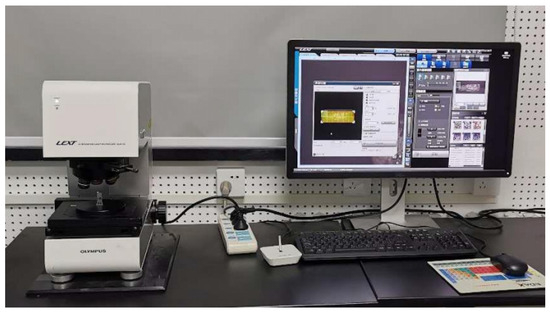 For cross-sectional analysis of the single-pass clad layers, an OLS4100 3D laser scanning confocal microscope (Olympus Corporation, Tokyo, Japan) was employed, as shown in Figure 2. The OLS4100 is a high-precision instrument designed for capturing surface topography and measuring melt pool characteristics. It provides high-resolution three-dimensional imaging, accurate measurement, and non-destructive surface analysis. With its high-quality objectives and excellent repeatability and reliability, the microscope is well-suited for observing and quantifying cladding layer cross-sections.