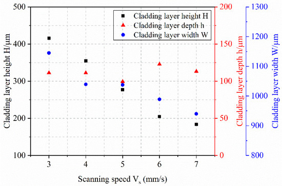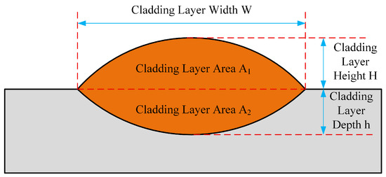 The cross-sectional schematic of the clad layer is shown in Figure 3. The geometric dimensions of the clad layer, including clad height, clad depth, and clad width, are denoted by the letters H, h, and W, respectively, in this paper.