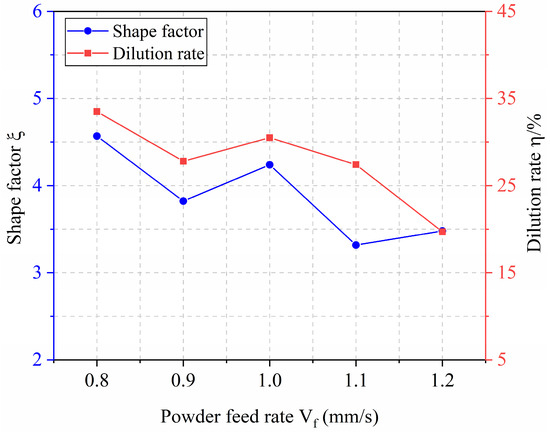 Effect of Powder Feed Rate on Shape Factor and Dilution Rate.