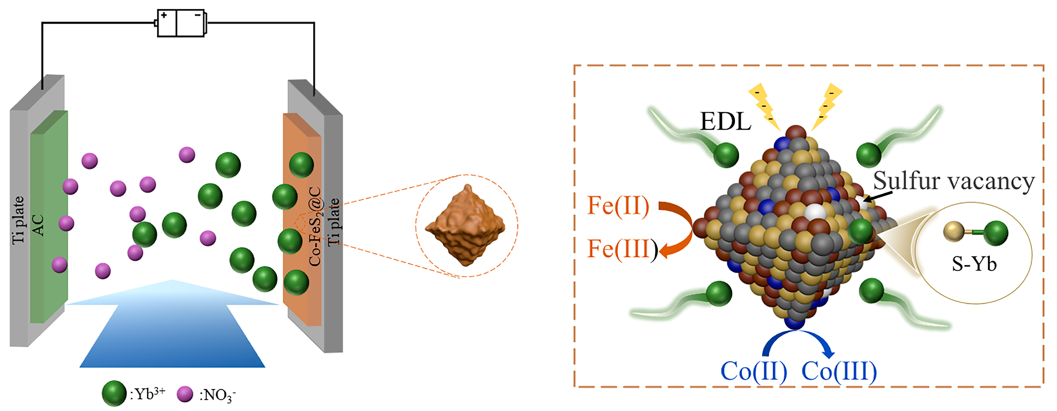 Bi K, Cheng T, Shi Z, Huang W, Deng F, Zhang Y. Electronic Structure and Lattice Engineering of Cobalt Doping FeS2@C for Superior Electrosorption of Ytterbium Ions. Materials. 2025; 18(21):4994. https://doi.org/10.3390/ma18214994
