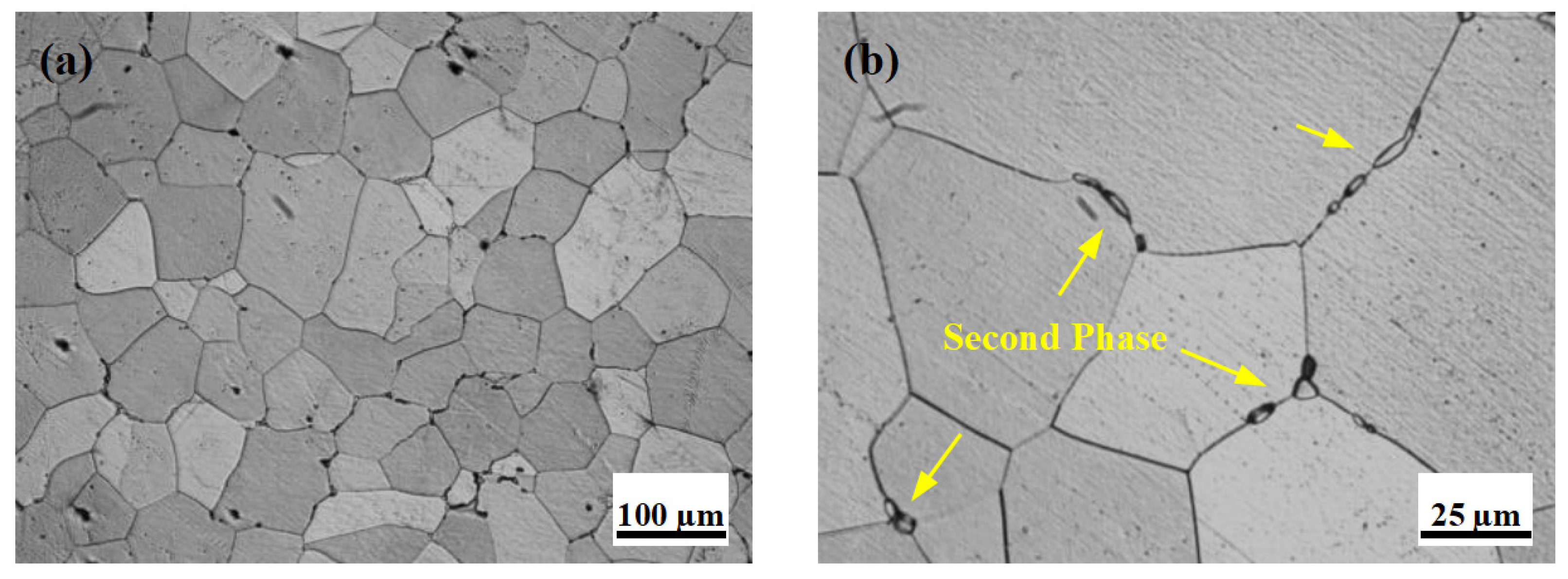- Zhang, Z.; Zhang, J.; Xie, J.; Liu, S.; He, Y.; Guan, K.; Wu, R. Developing a Low-Alloyed Fine-Grained Mg Alloy with High Strength-Ductility Based on Dislocation Evolution and Grain Boundary Segregation. Scr. Mater. 2022, 209, 114414. [Google Scholar] [CrossRef]
