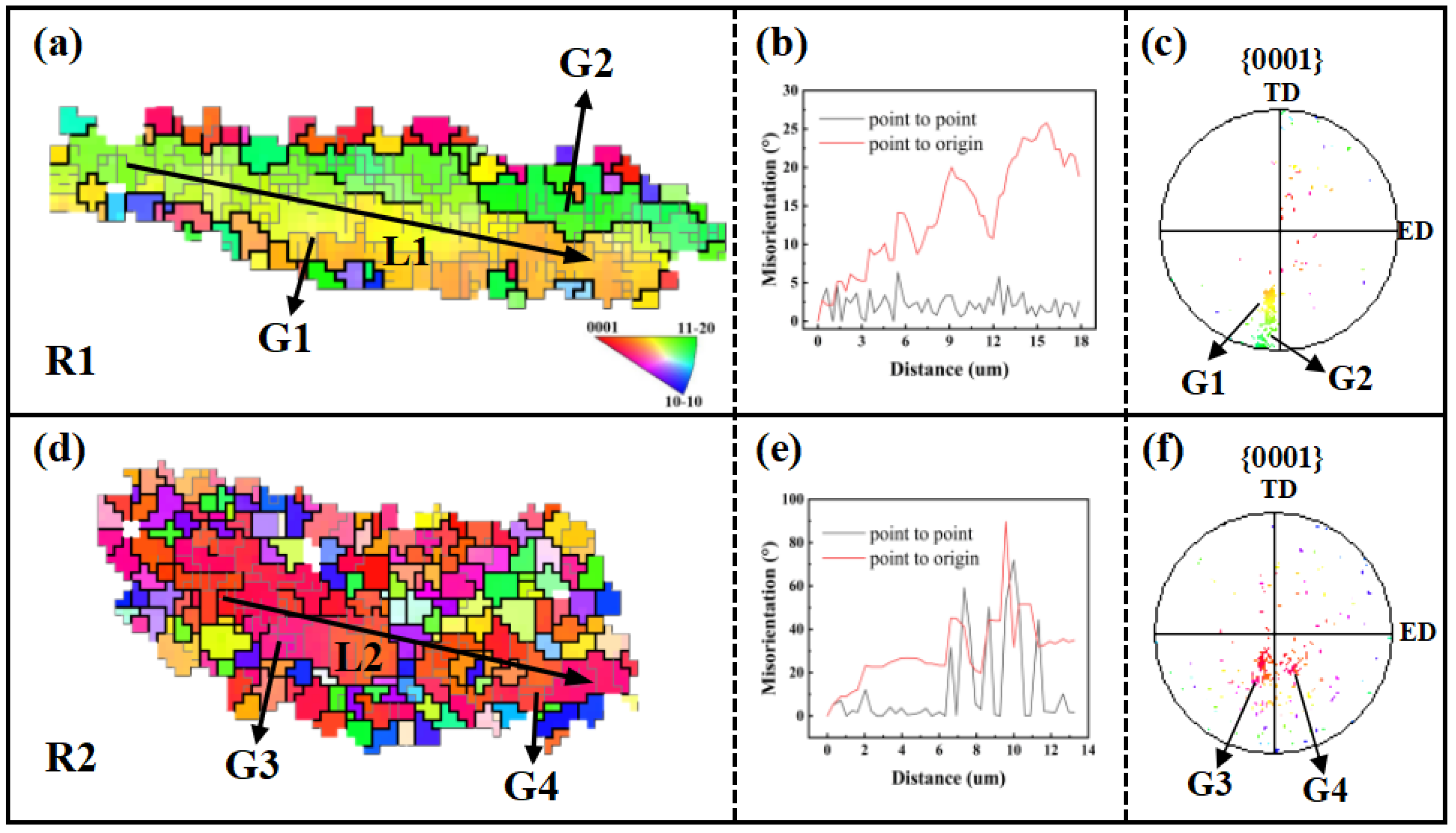 - CDRX is the primary grain refinement mechanism during AUE370. It significantly refined a portion of the grains. However, it failed to completely eliminate the coarse deformed grains, resulting in the formation of a bimodal microstructure.