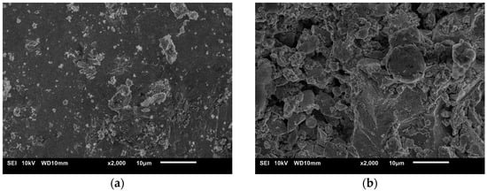 Considering that after ESA samples at discharge energies of 0.36 J and 0.90 J possess high roughness, additional processing was performed at Wp = 0.05 J. The roughness indicators after these treatments for both modes remain similar: Ra = 7.5146 µm at Wp = 0.36 J and Ra = 7.7075 µm at Wp = 0.90 J. Despite the similar Ra values, noticeable changes in surface topography reflect the mechanism of coating formation by the ESA method, including differentiated material accumulation and formation of a special structure (Figure 5).