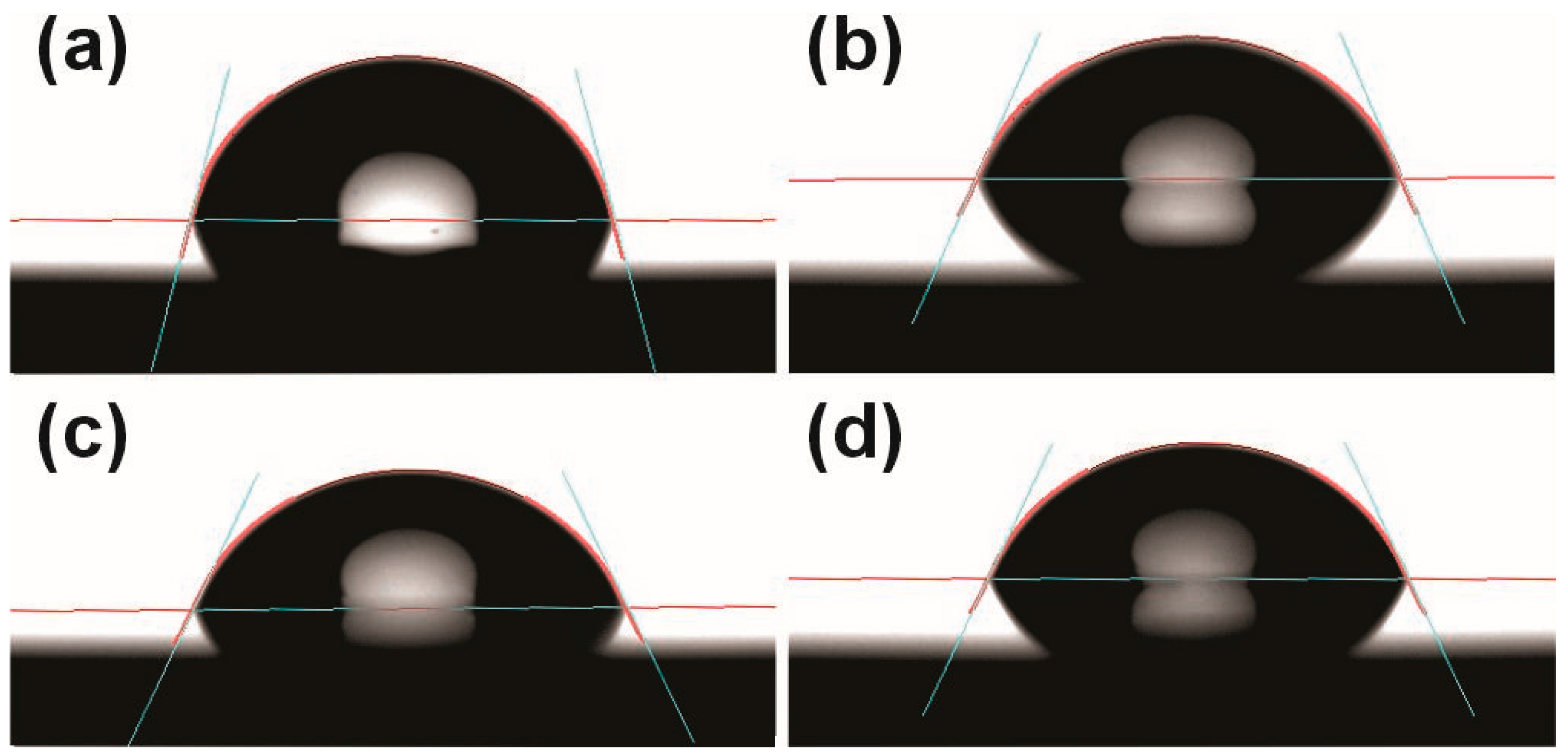 2.4. Analysis of Surface Wettability