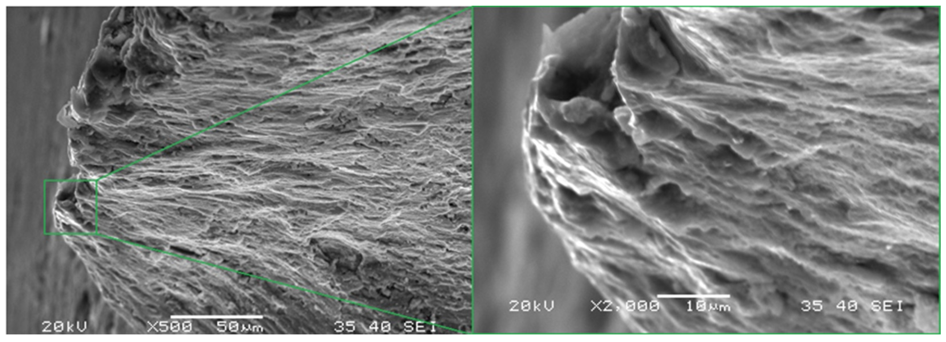 3.6. Fatigue Fracture Surface
