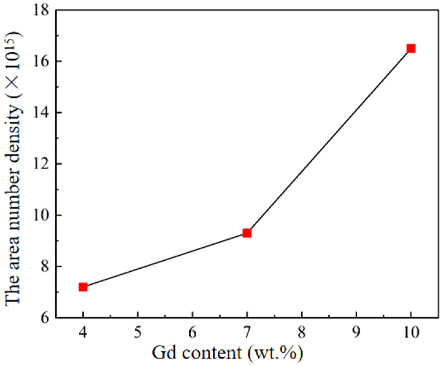 3.3.2. The Microstructure Analysis of Peak-Aged Mg-xGd-4Y-1Sm-0.5Zr Alloys