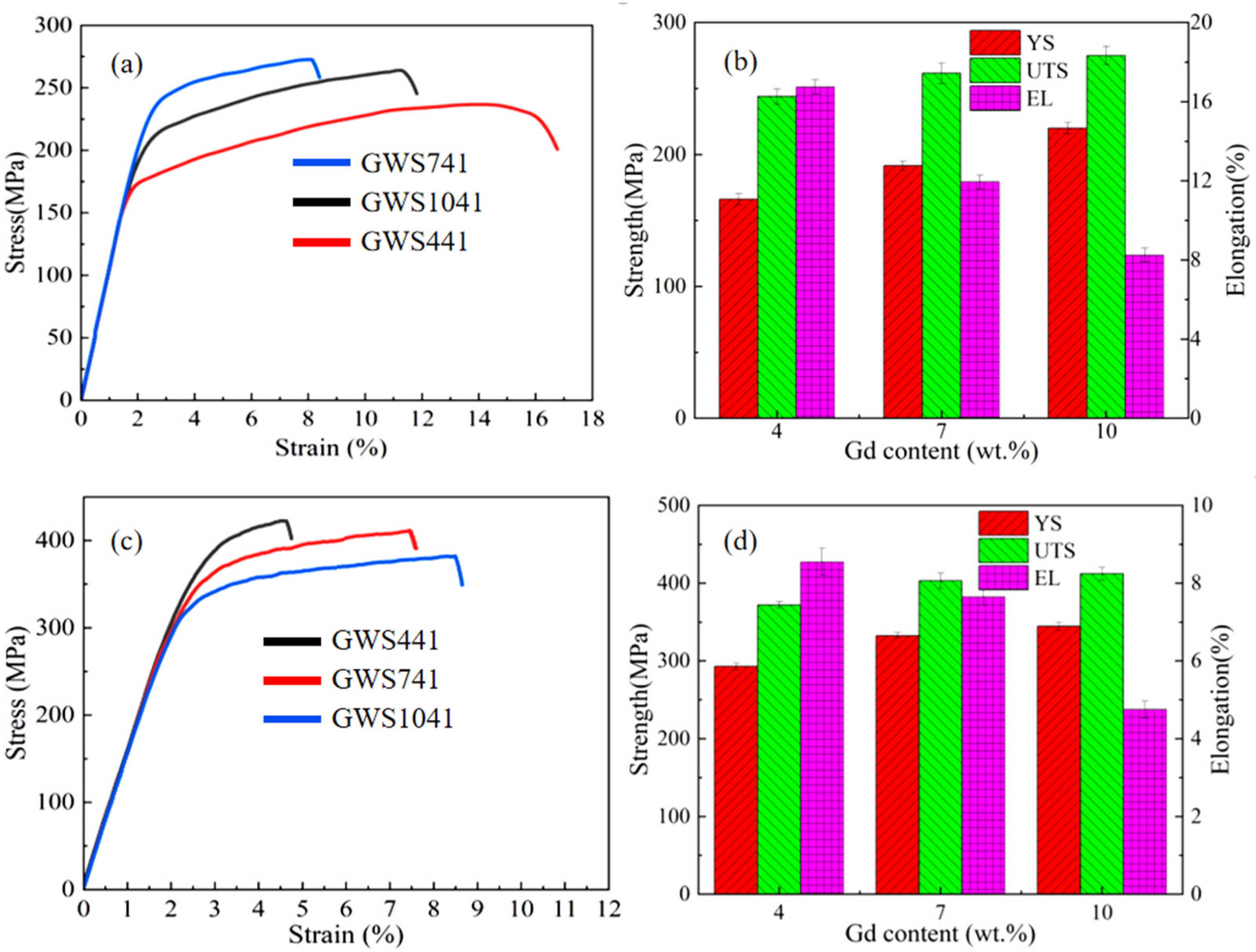 | Mg-7Gd-4Y-1Sm-0.5Zr (GWS741) | 6.91 | 3.75 | 0.87 | 0.48 |