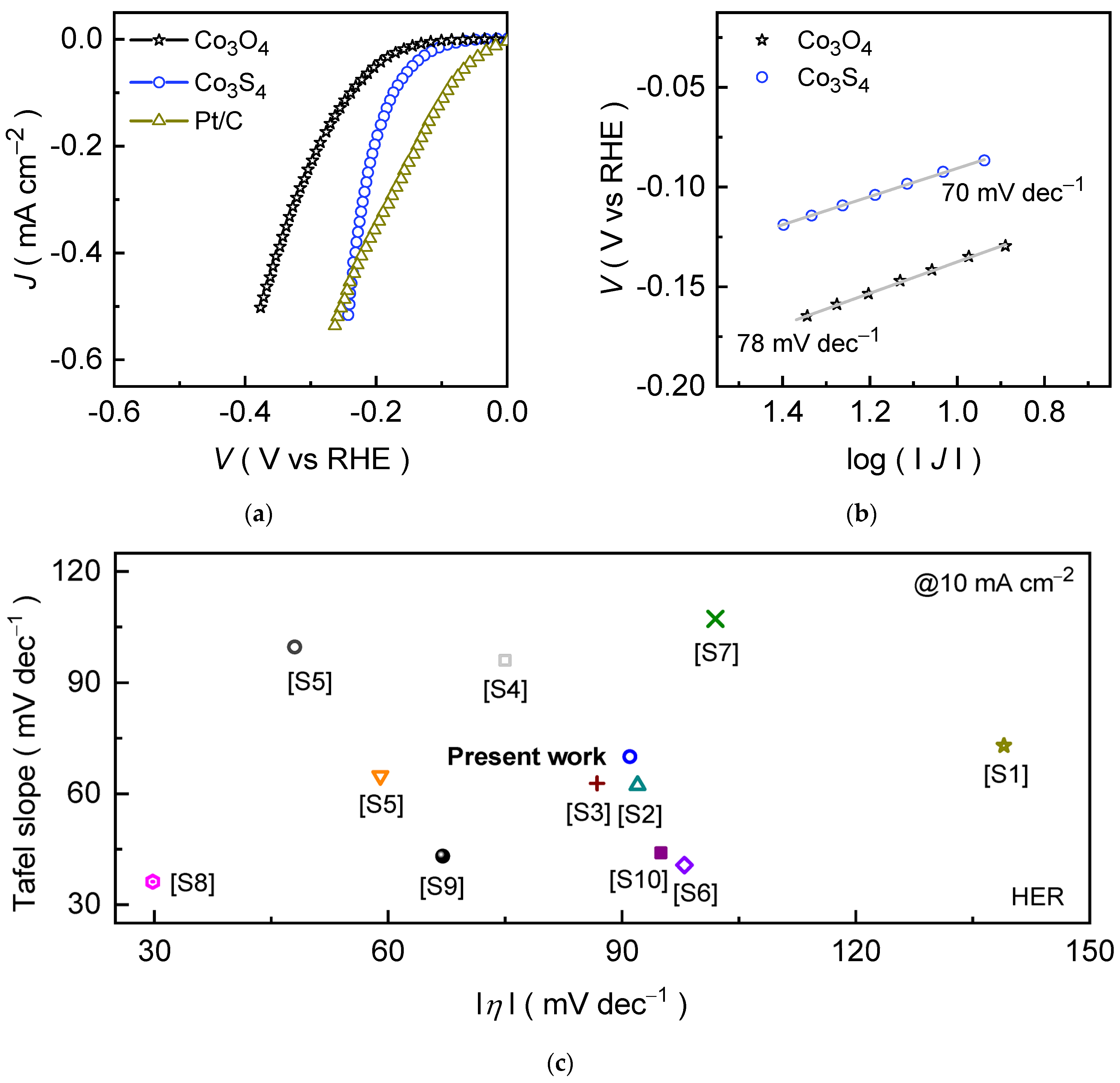 - Wu, Y.; Sun, R.; Cen, J. Facile Synthesis of Cobalt Oxide as an Efficient Electrocatalyst for Hydrogen Evolution Reaction. Front. Chem. 2020, 8, 386. [Google Scholar] [CrossRef]
