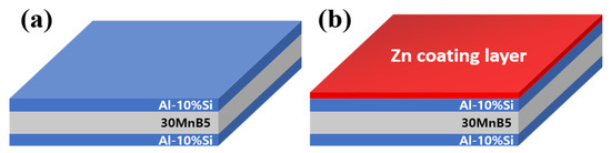 Diagram of the coating-layer shape of each specimen: (a) Al–Si coating, and (b) Al–Si + Zn coating layers.