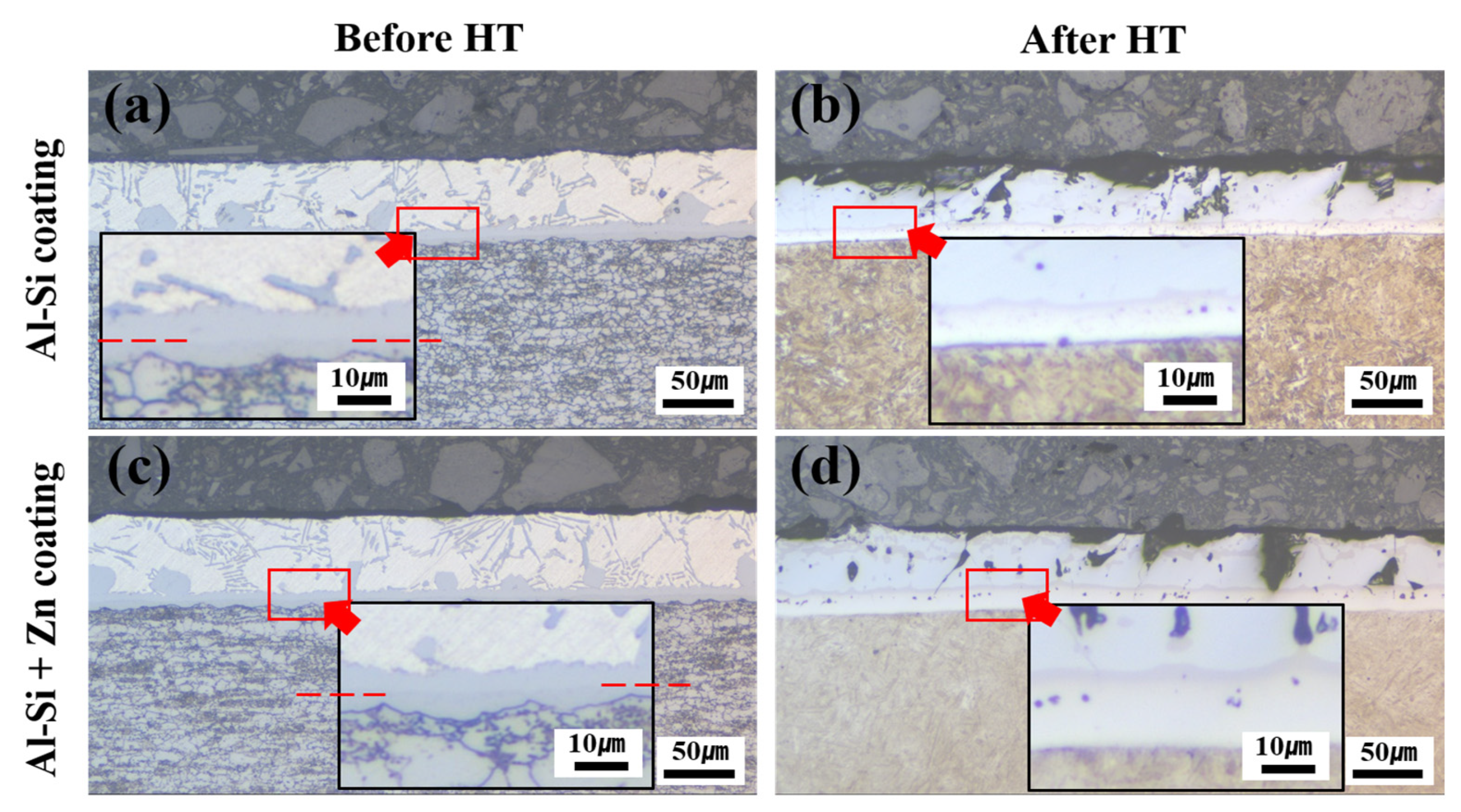 - Wu, S.; Bardelcik, A.; Chiriac, C.; Shi, C. A Comprehensive Assessment of Al-Si Coating Growth at Various Heating Rates, Soaking Temperatures, and Times. Coatings 2024, 14, 399. [Google Scholar] [CrossRef]