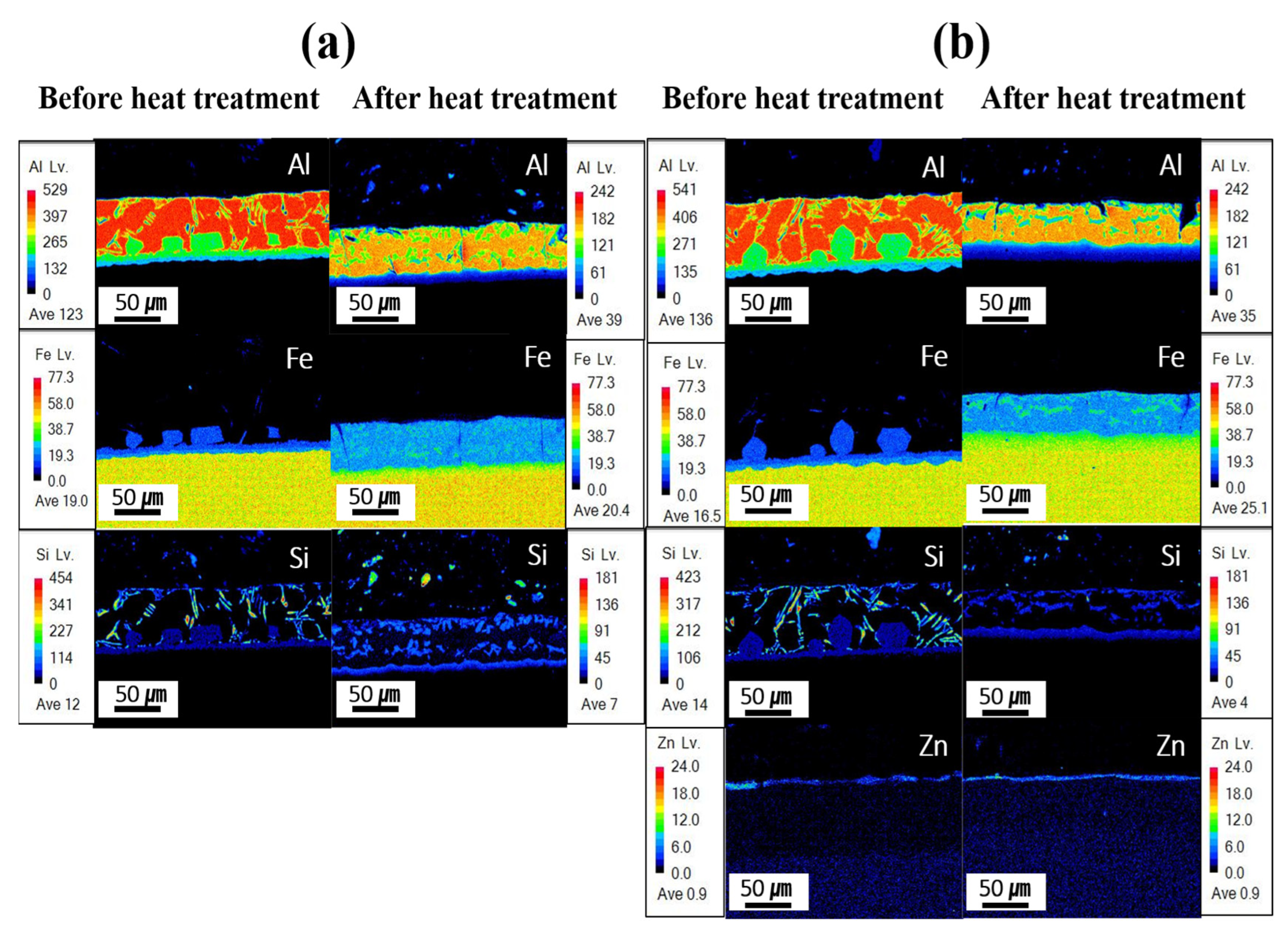 - Hayashida, S.; Mitsunobu, T.; Takebayashi, H. Effect of Al in the Coating Layer of Zn-coated Steel Sheet on Zn Oxidation during Hot-stamping Heating. ISIJ Int. 2025, 65, 1186–1191. [Google Scholar] [CrossRef]