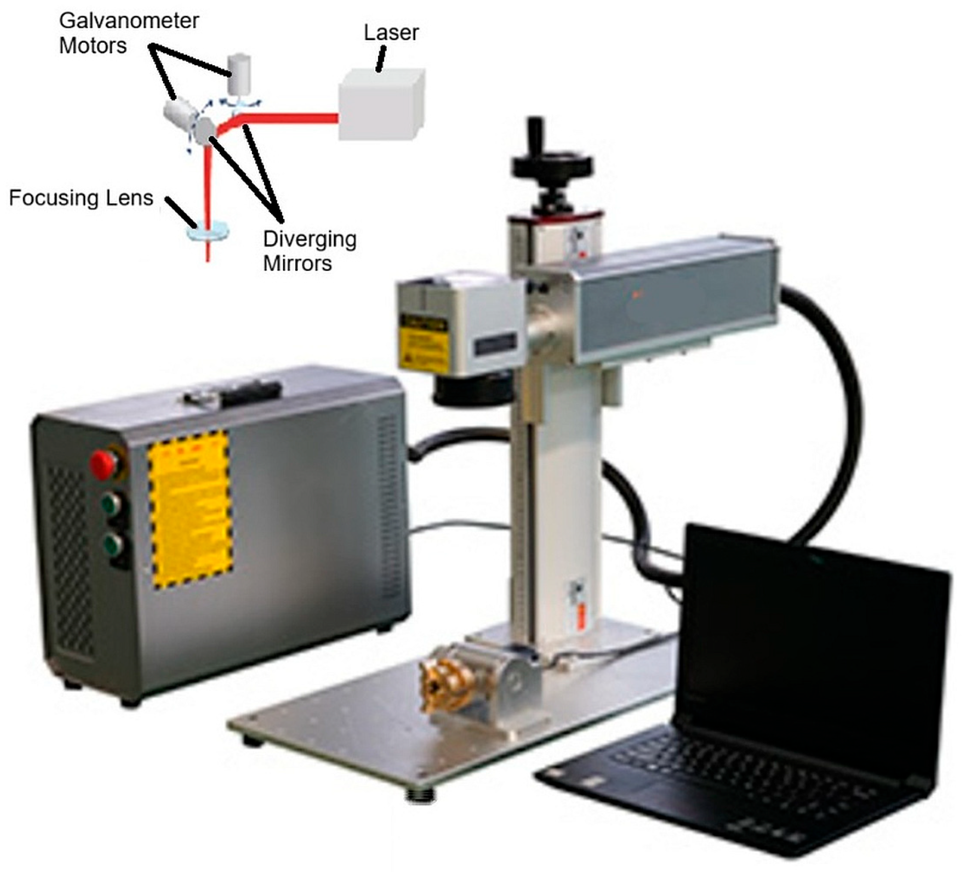 - Amara, E.H.; Haïd, F.; Noukaz, A. Experimental Investigations on Fiber Laser Color Marking of Steels. Appl. Surf. Sci. 2015, 351, 142–150. [Google Scholar] [CrossRef]