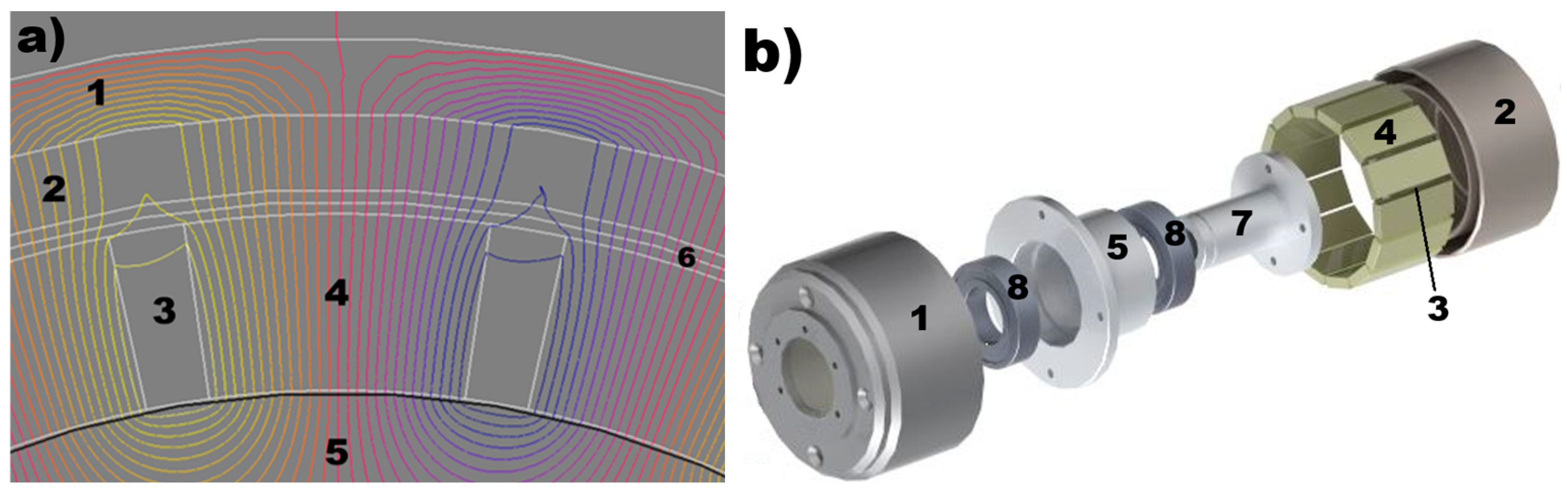 - Gallicchio, G.; Palmieri, M.; Di Nardo, M.; Cupertino, F. Fast Torque Computation of Hysteresis Motors and Clutches Using Magneto-static Finite Element Simulation. Energies 2019, 12, 3311. [Google Scholar] [CrossRef]