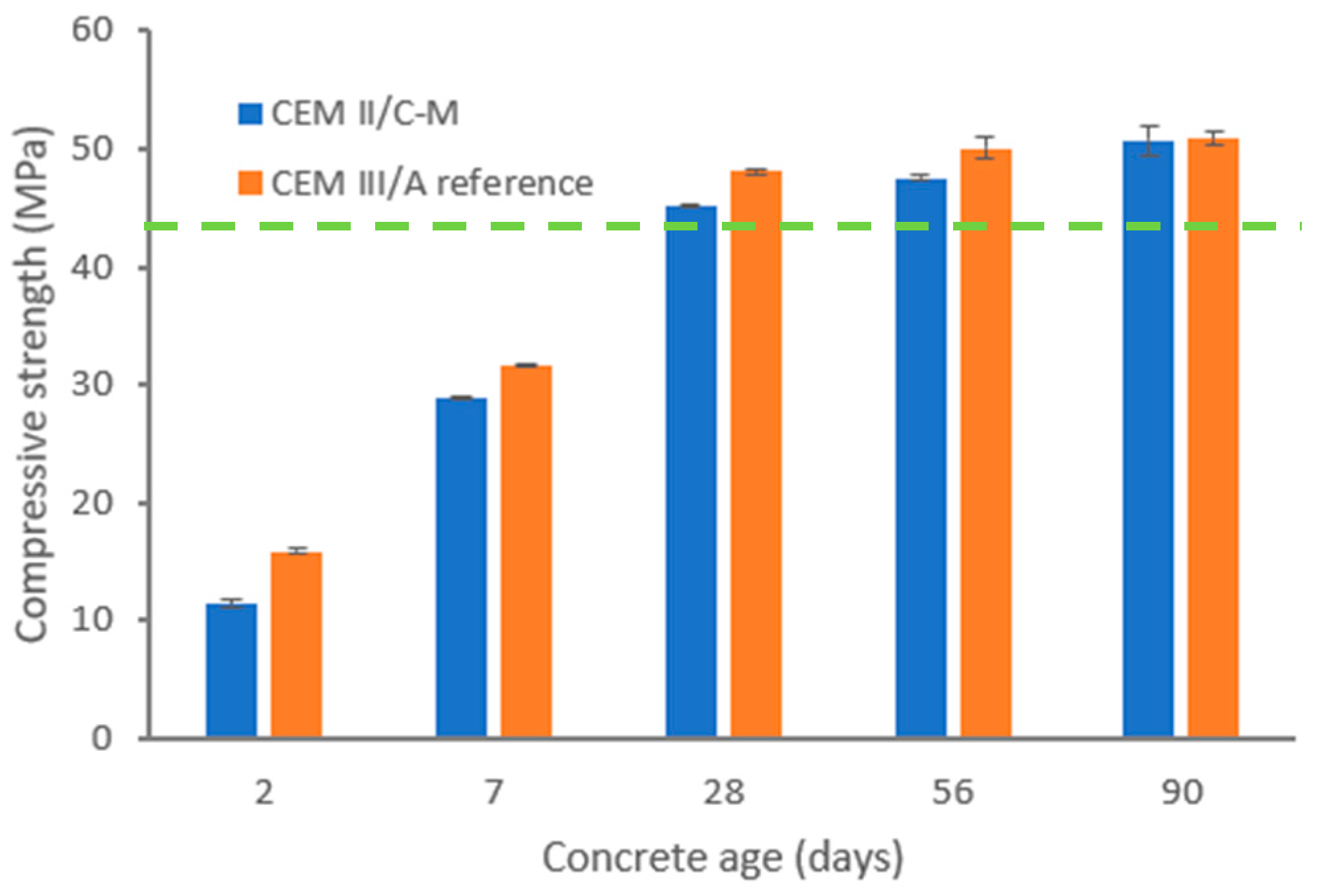 | CEM III/A (Ref. mix) | 50 | - | - | - | - | 50 | 2.75 |