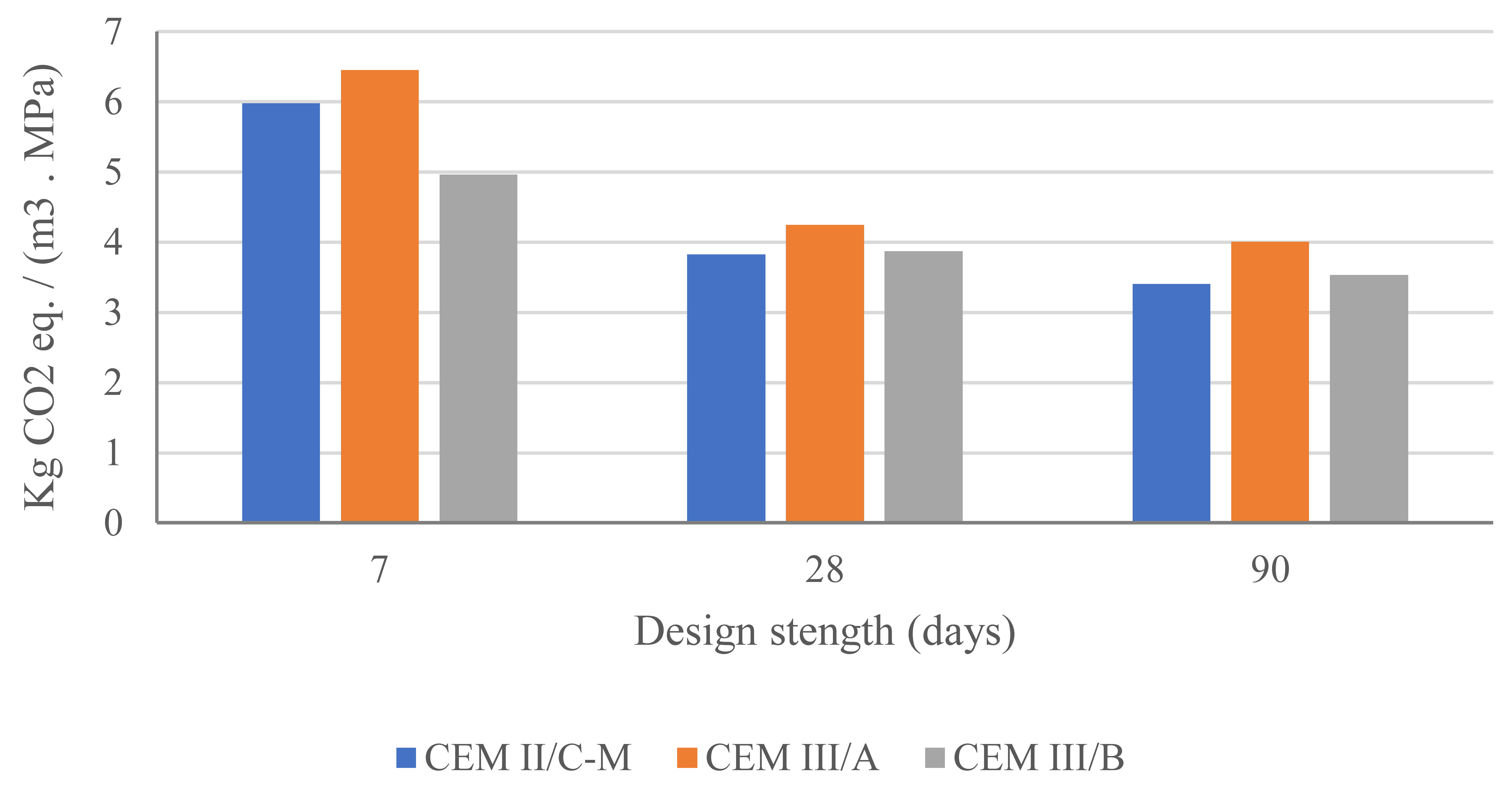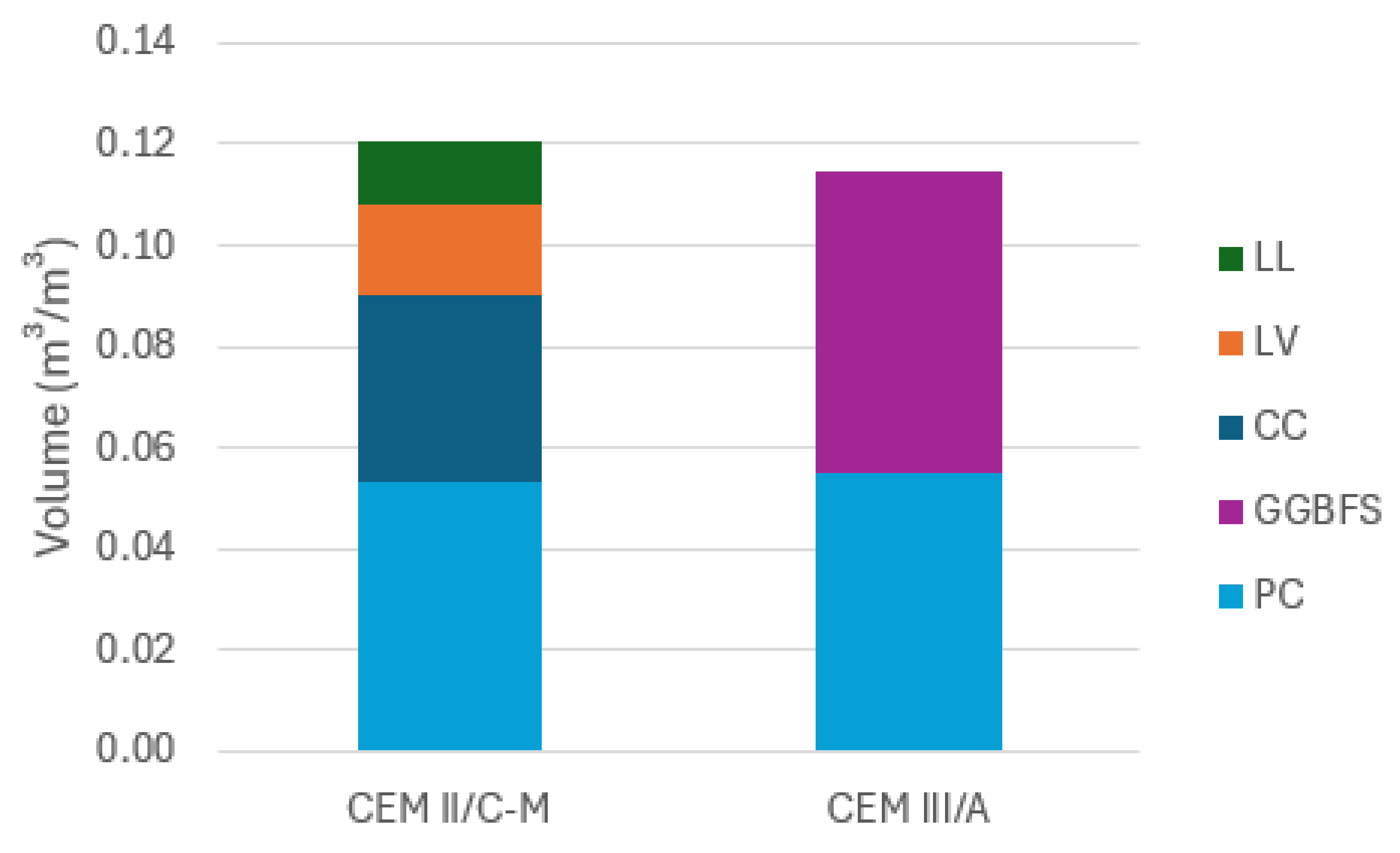| Material (kg/m3) | CEM II/C-M | CEM III/A |