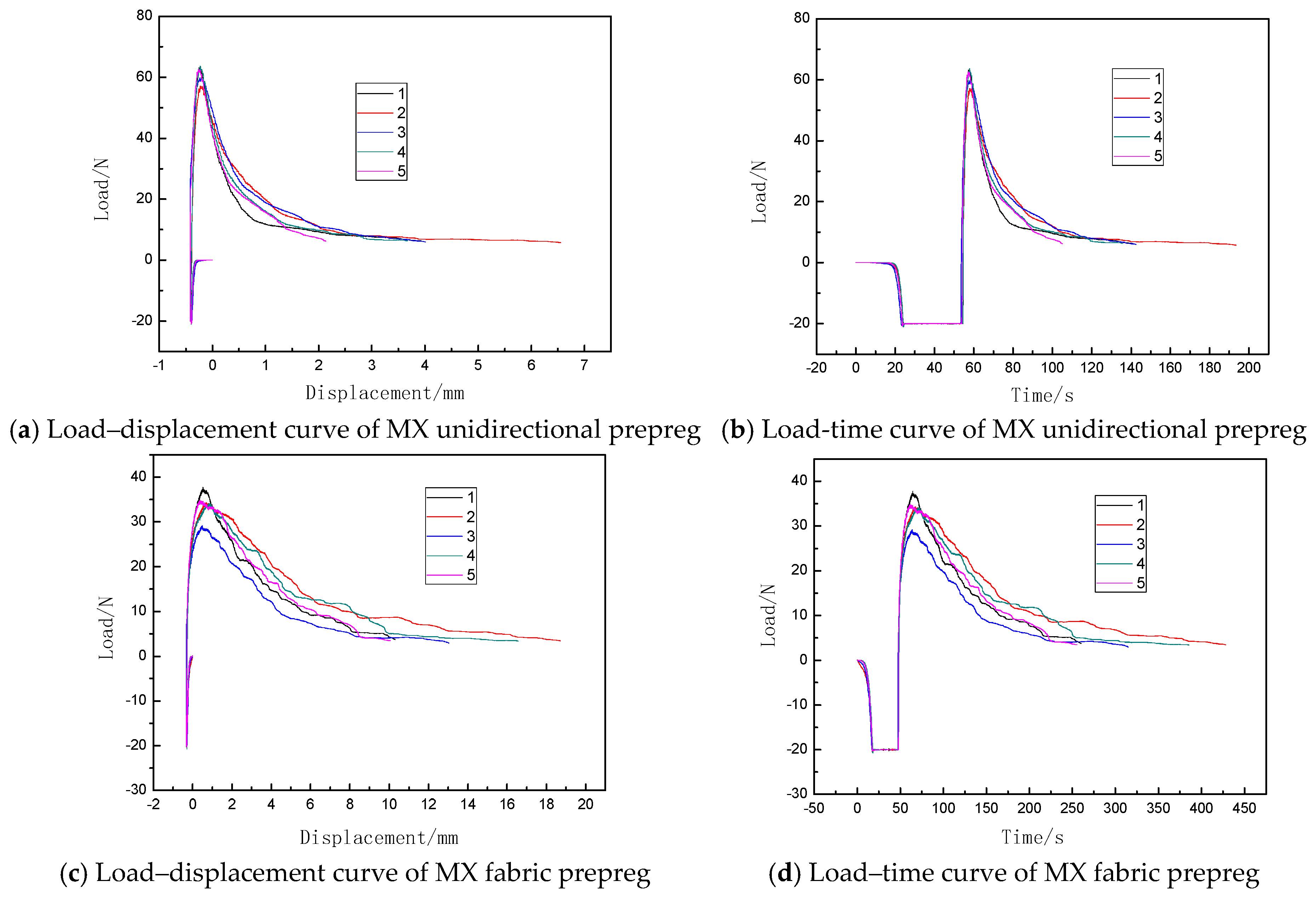 3.1. Prepreg Tack Test by Compression-to-Tension Method