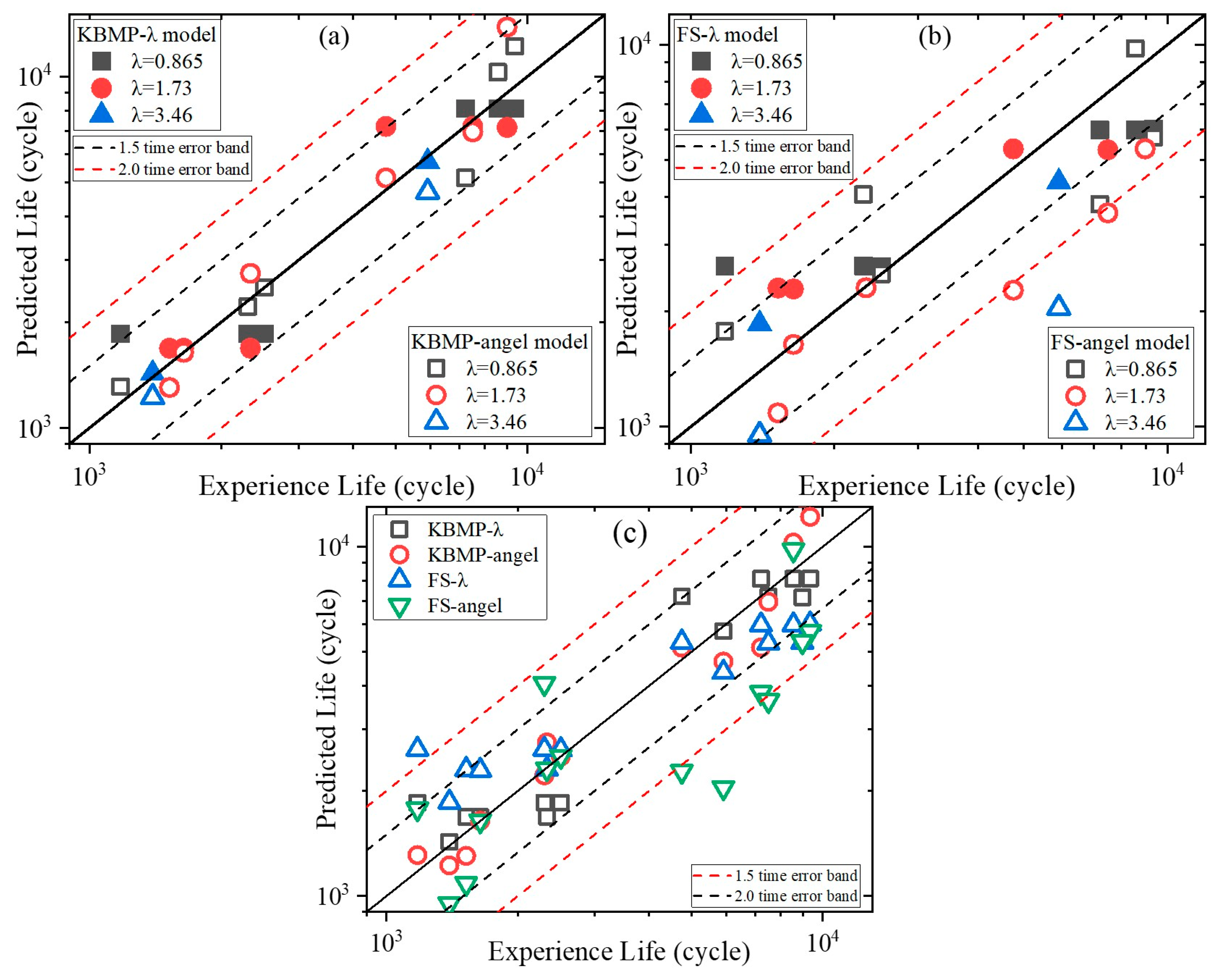 MLCF tests were conducted under proportional, fully reversed loading (R = −1 for both axial and shear strains) using the MTS 809 system with an axial-torsional extensometer. R is the ratio of the peak strain amplitude to the valley strain amplitude. The frequency of MLCF tests was 1 Hz and phase angle was 0°. The applied axial strain amplitudes were 0.4% and 0.6% combined with λ of 0.865, 1.73, and 3.46 [