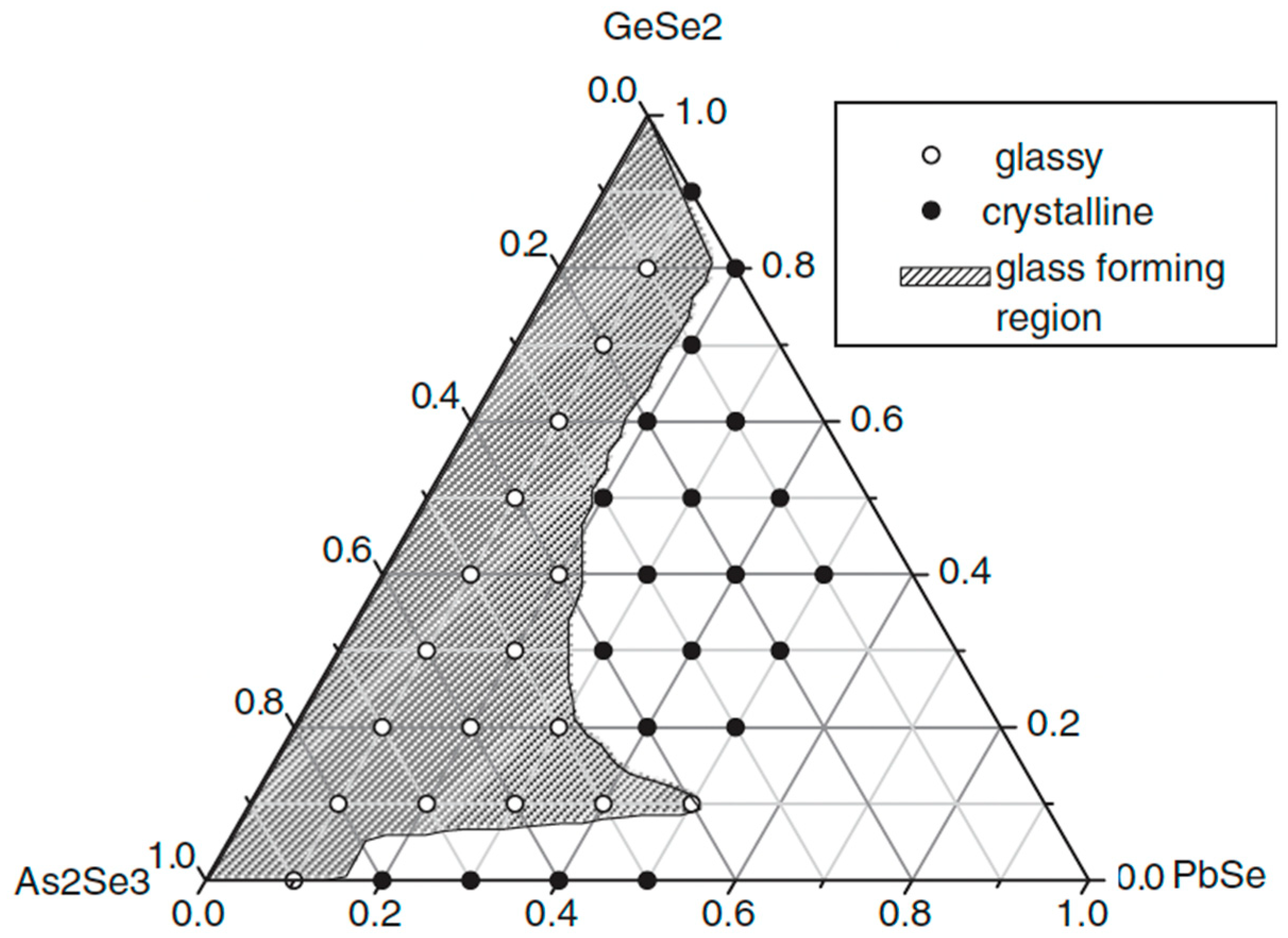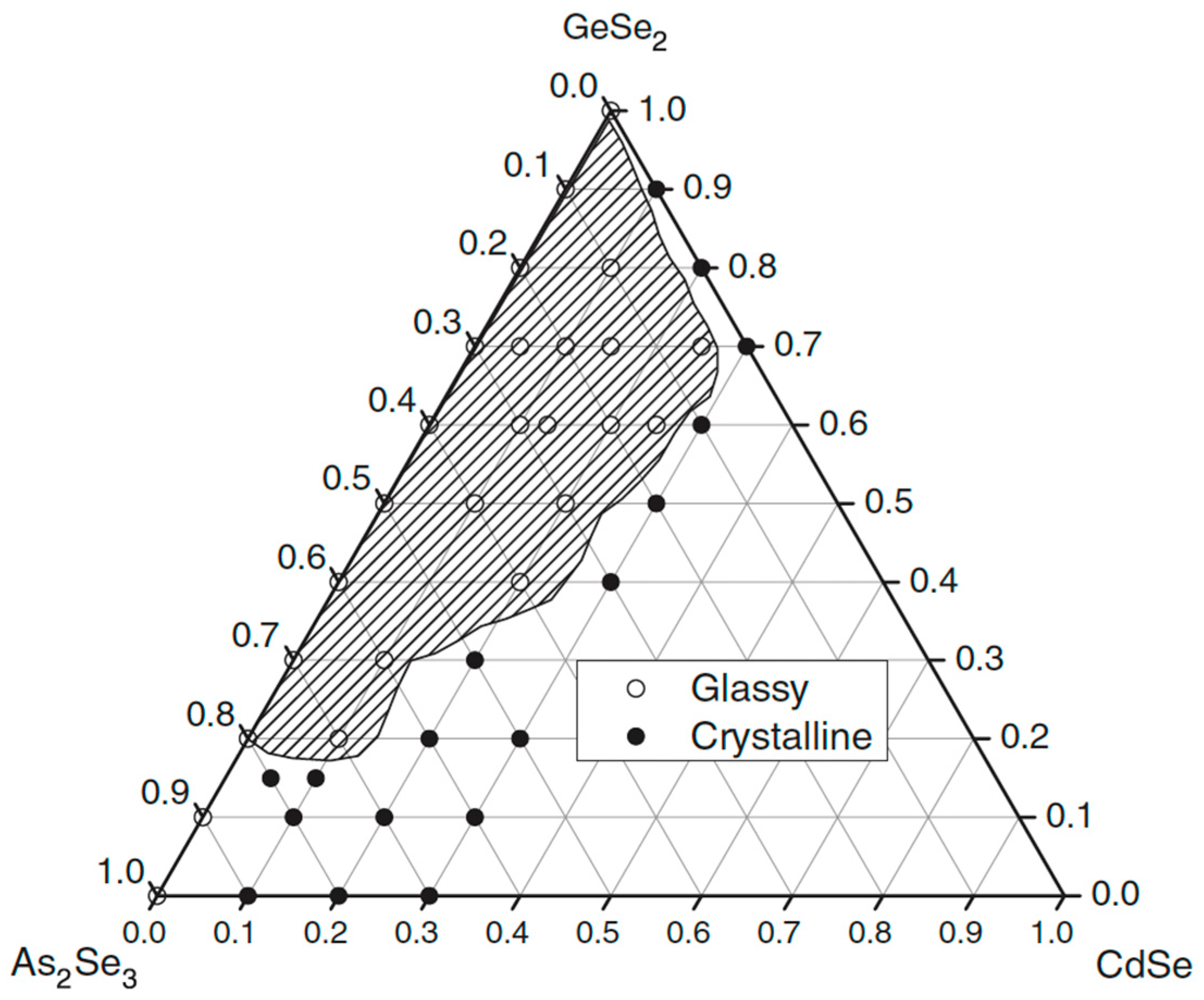 2.1. Glass Formation in the GeSe2–As2Se3–Cu2Se System [21,22]
