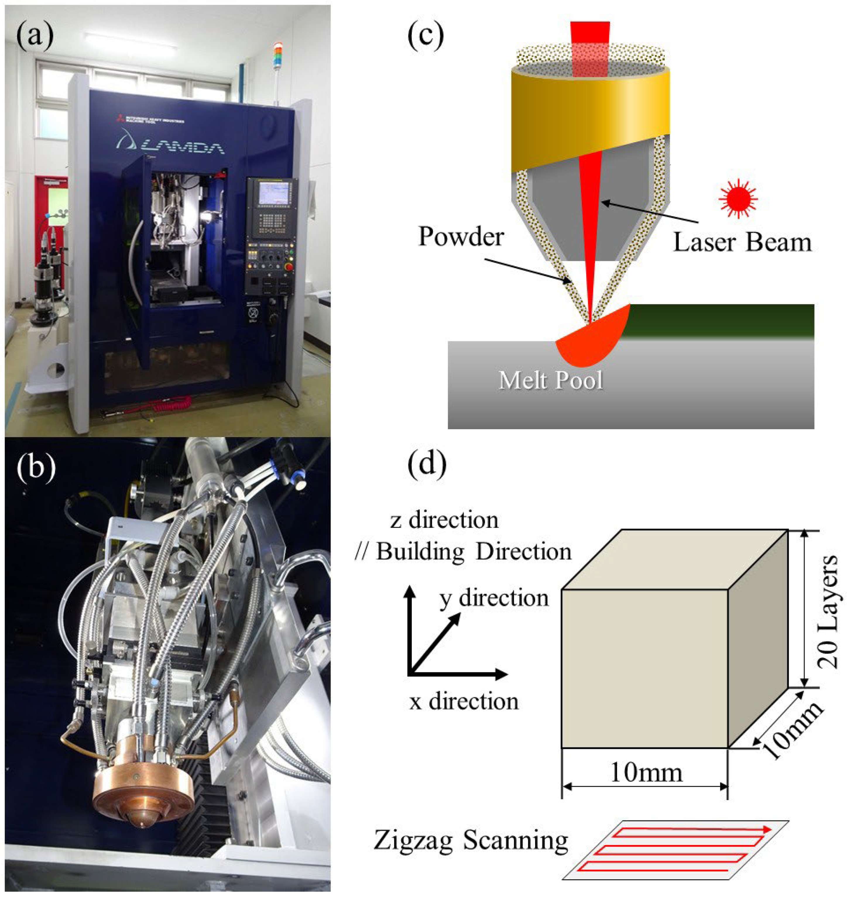 - Kuramoto, H. Type of metal 3D printing and introduction of powder DED metal 3D printer LAMDA. J. Rob Soc. Jpn. 2021, 39, 326–330. (In Japanese) [Google Scholar] [CrossRef]