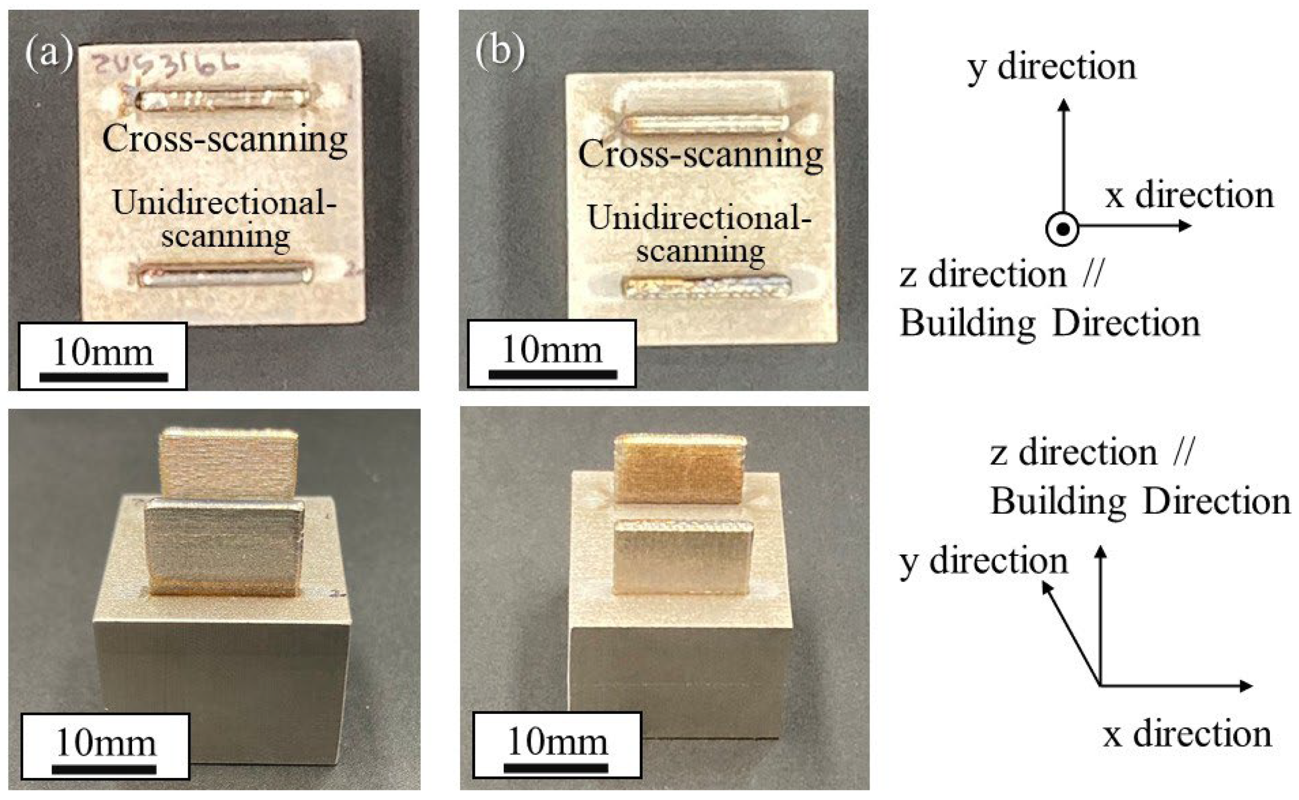 - Hagihara, K.; Nakano, T. Control of anisotropic crystallographic texture in powder bed fusion additive manufacturing of metals and ceramics—A review. JOM 2022, 74, 1760–1773. [Google Scholar] [CrossRef]