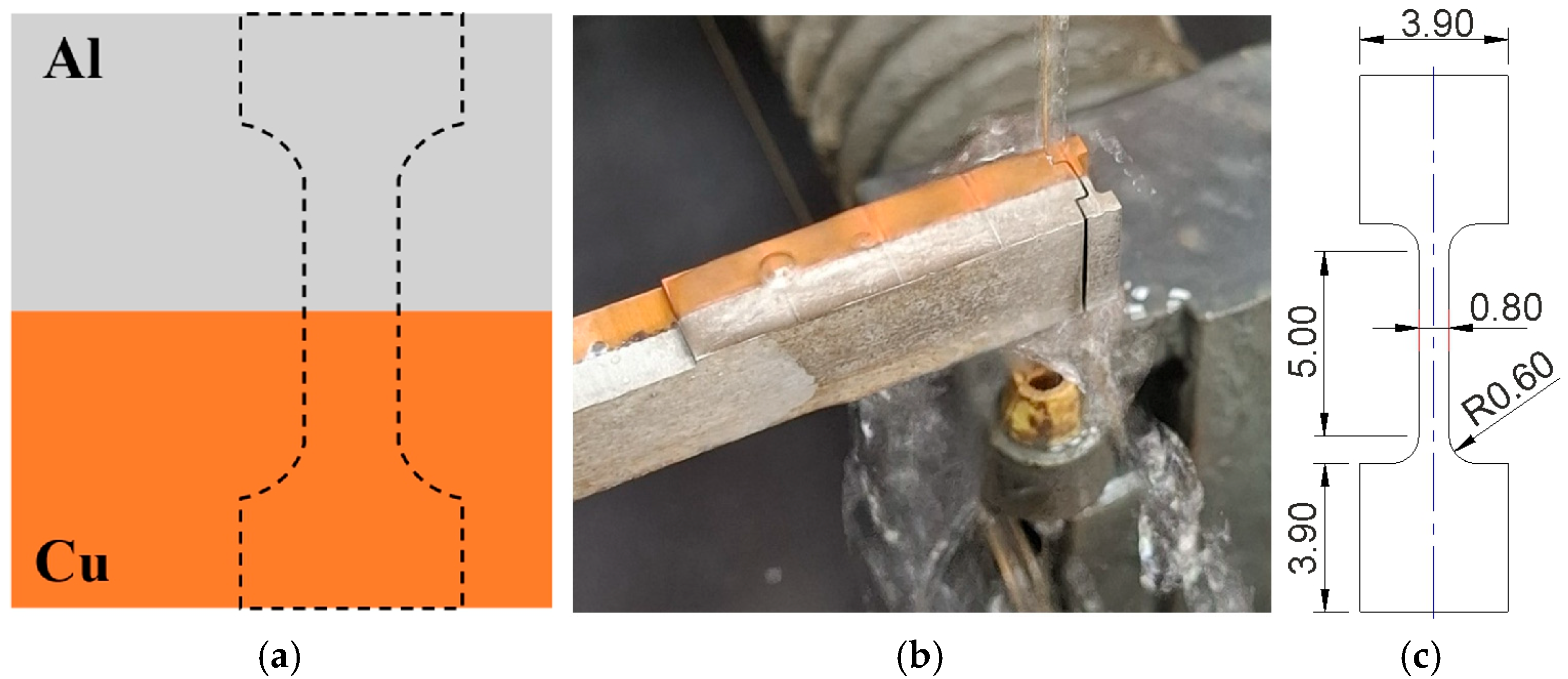 - Carvalho, G.H.S.F.L.; Galvão, I.; Mendes, R.; Leal, R.M.; Loureiro, A. Weldability of aluminium-copper in explosive welding. Int. J. Adv. Manuf. Technol. 2019, 103, 3211–3221. [Google Scholar] [CrossRef]
