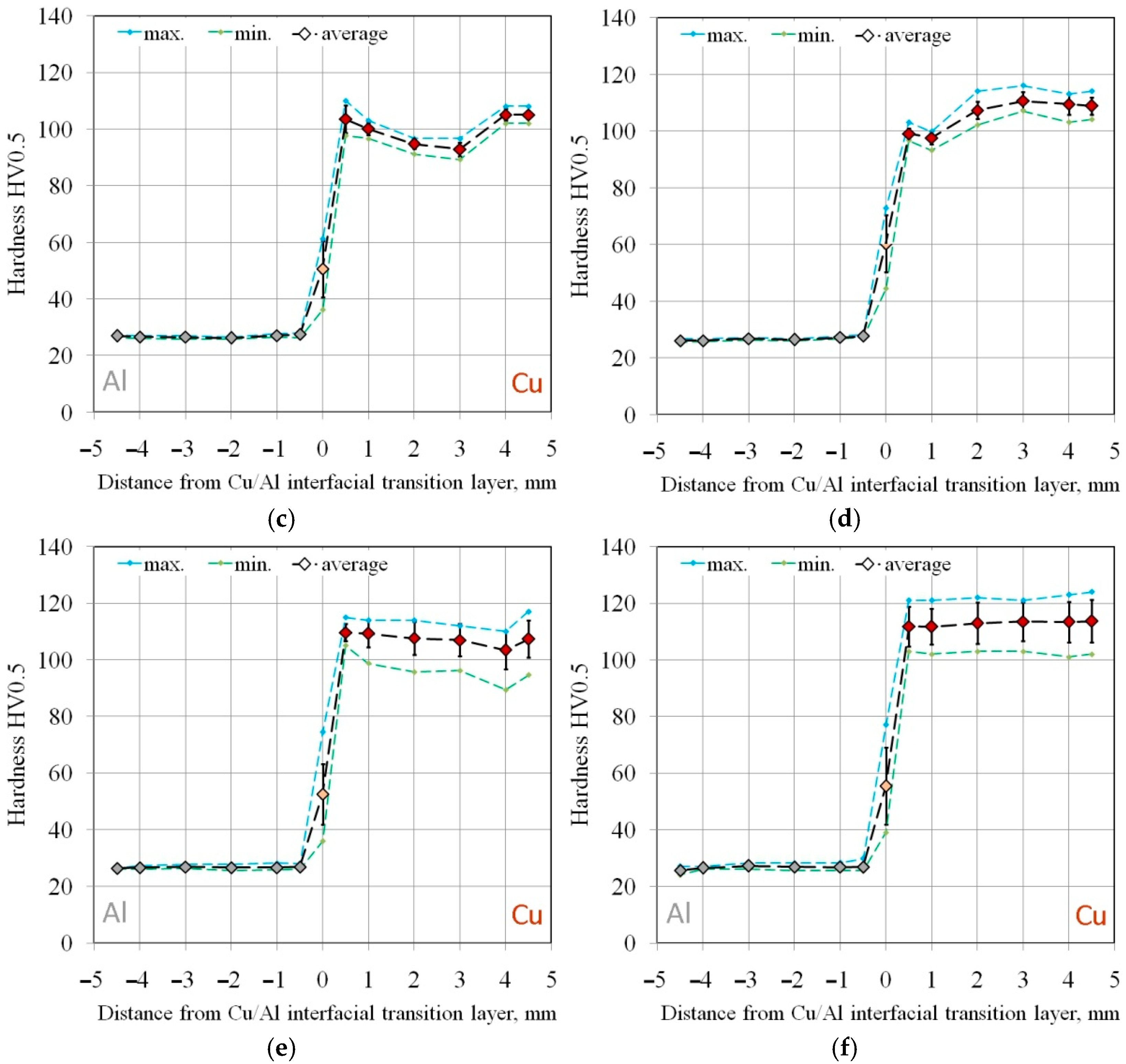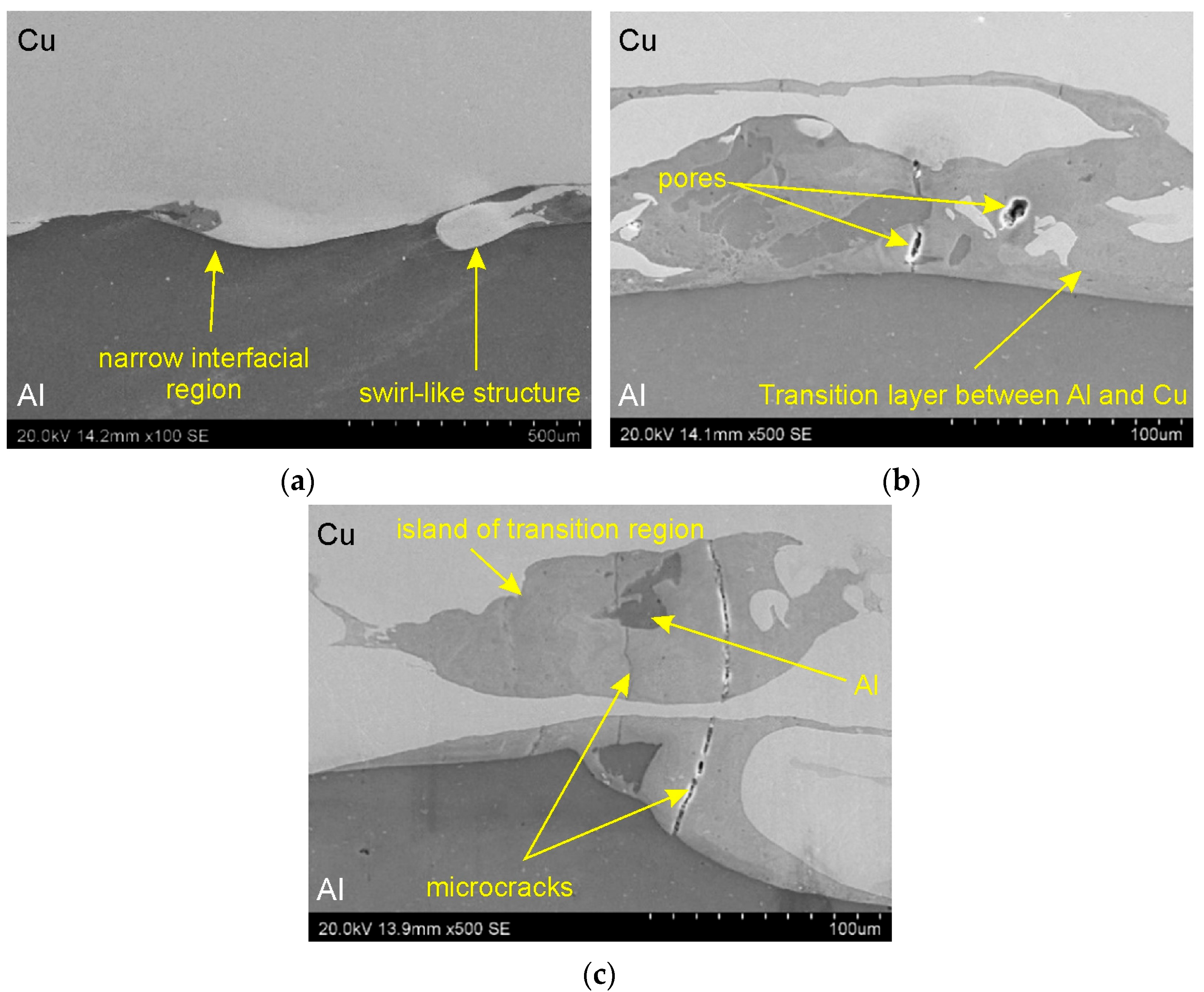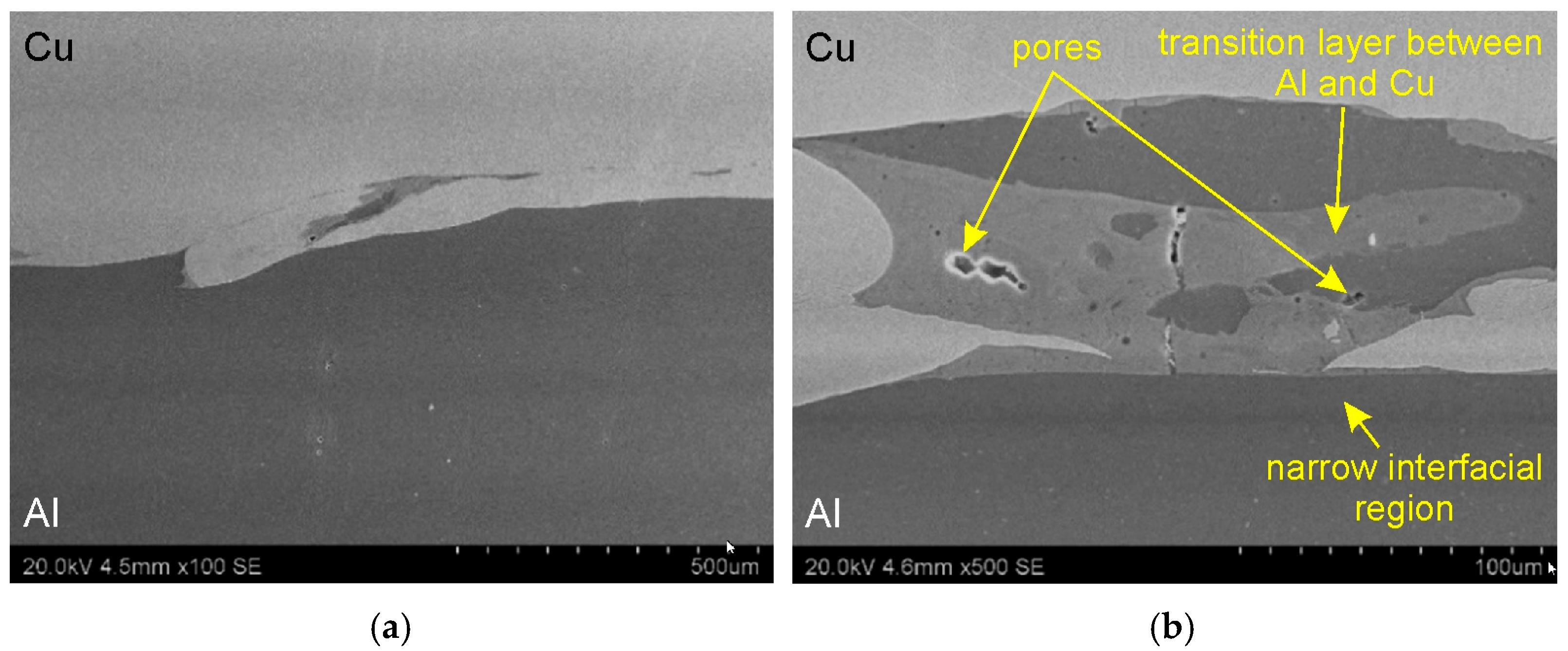 | Cu | Al | Al/Cu Interfacial Transition Layer | Cu | Al | Al/Cu Interfacial Transition Layer | ||