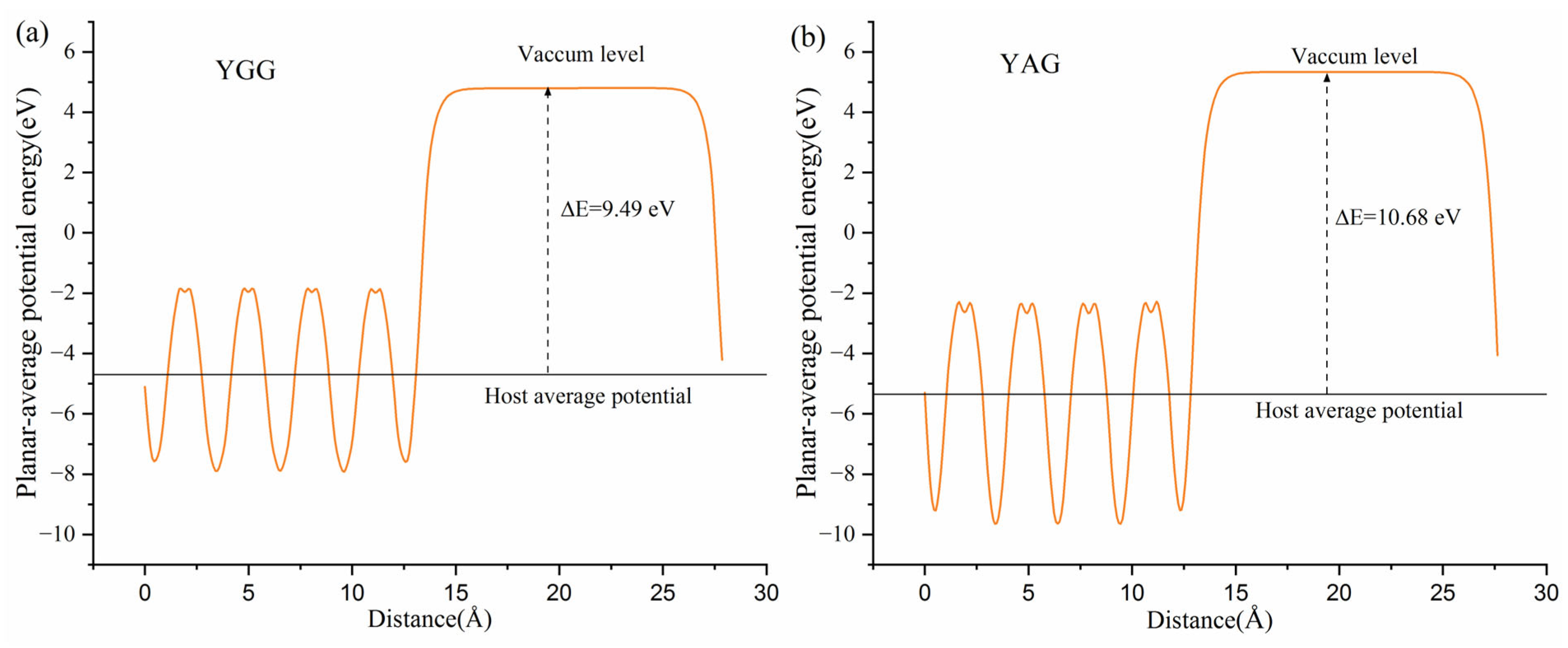 Figure 4. The vacuum level of YGG (a) and YAG (b) calculated by the PBE function.