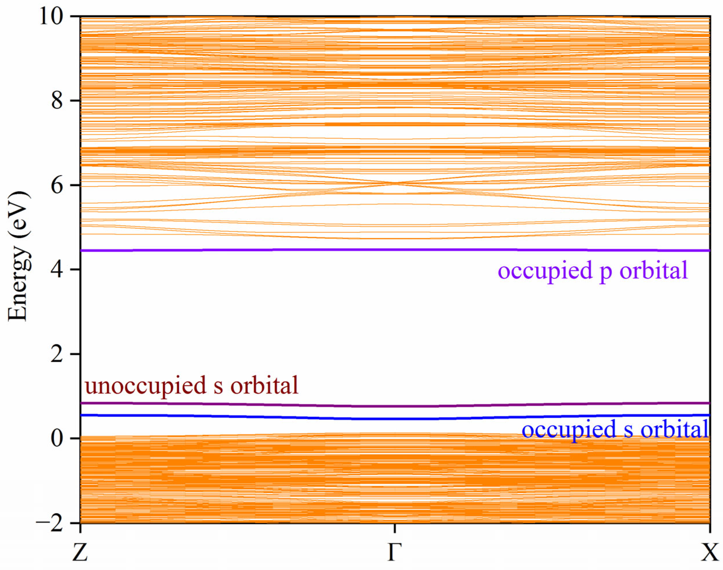 Figure A3 shows the band structure of the 3P1 state of BiY in YAG. The structural relaxation breaks the crystal symmetry, resulting in the splitting of degenerate bands. Both the s and p orbitals show flat band property.