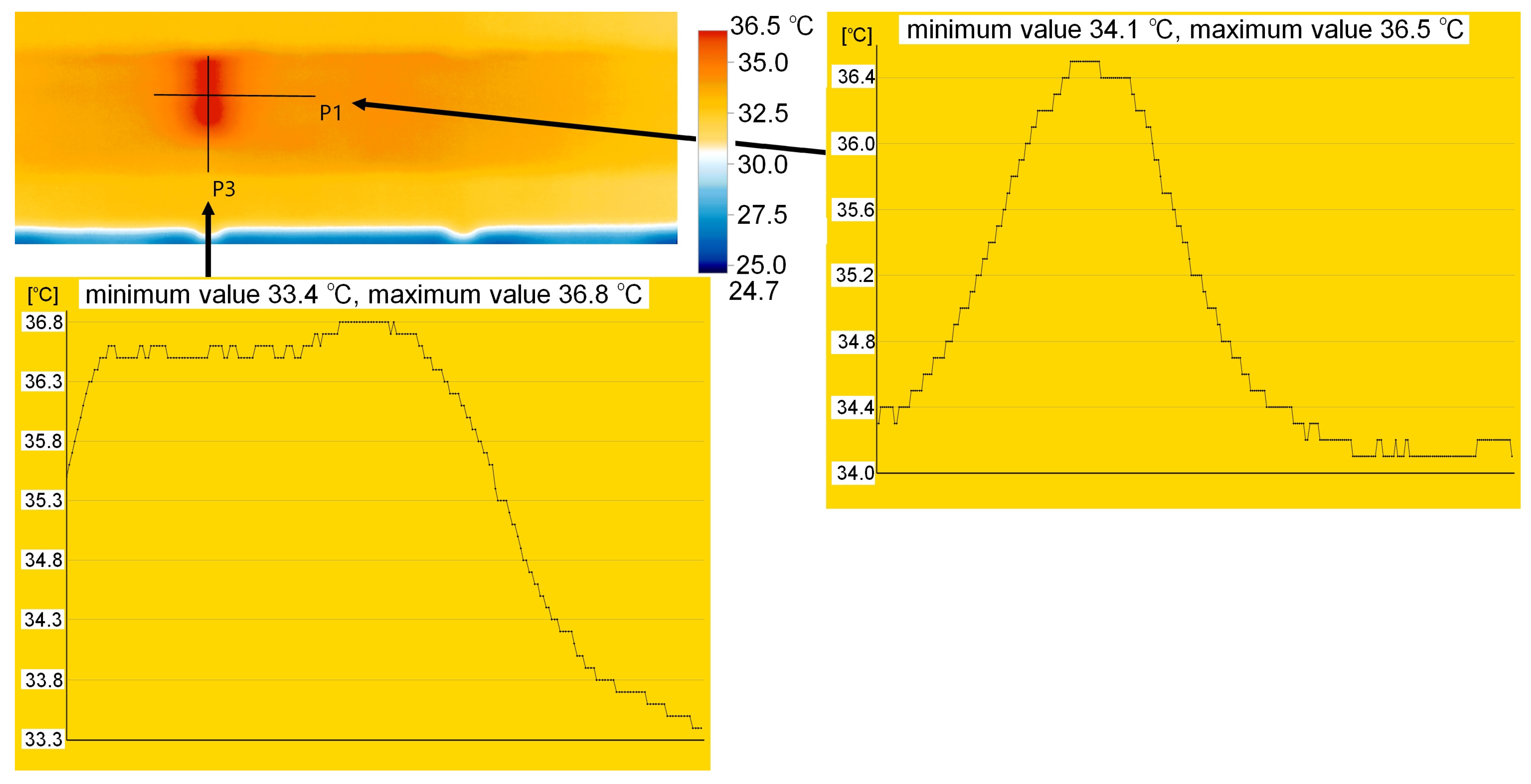 - P3 indicates the measurement point located on the wall perpendicular to the plane with the composite adhered.
