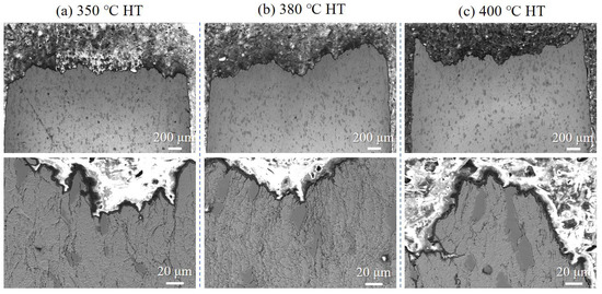 Specimens were heat-treated at 350 °C, 380 °C, and 400 °C for 2 h in a furnace (SXL-1400C, Shanghai Jujing Precision Instrument Manufacturing Co., Ltd., Shanghai, China), followed by furnace cooling.