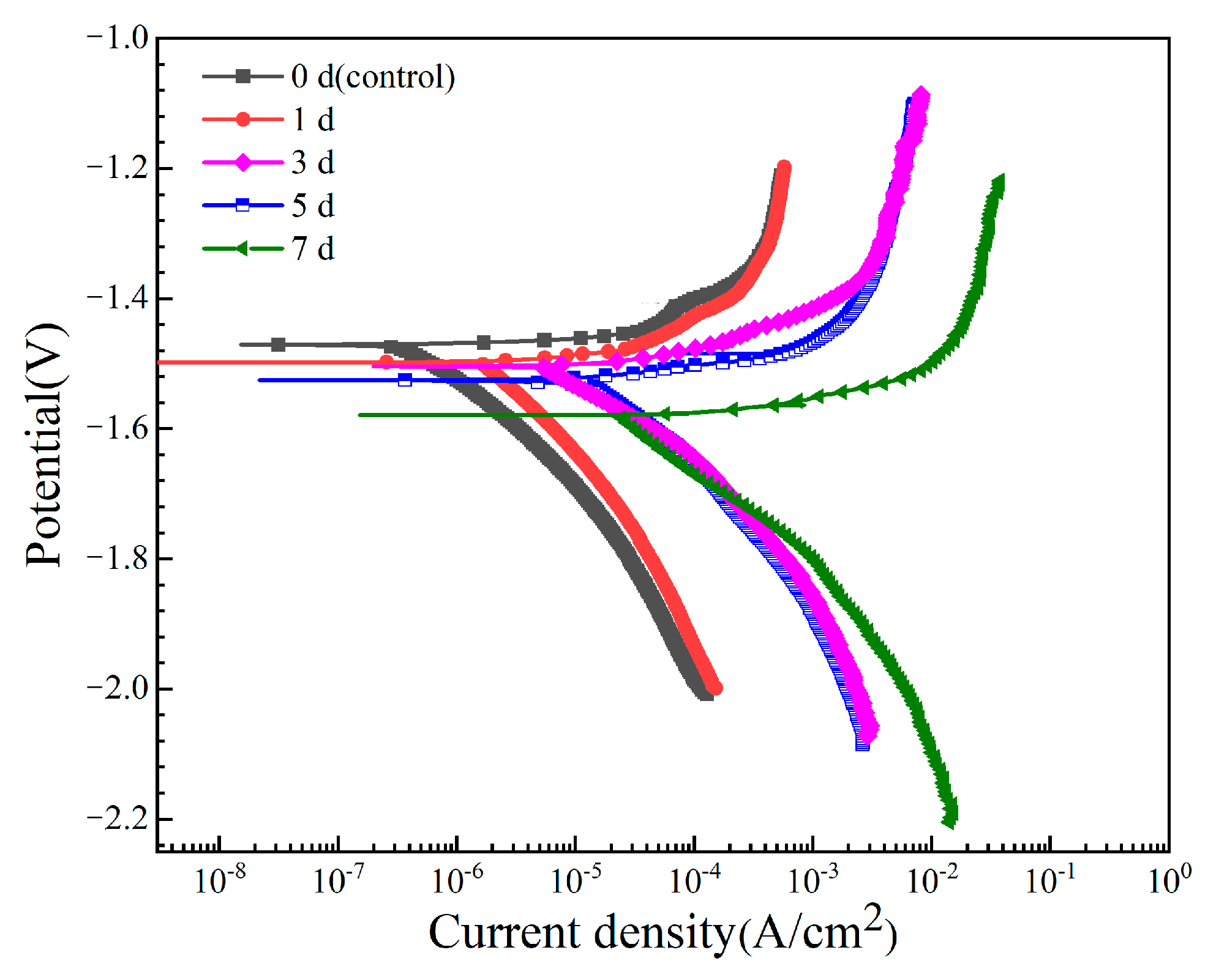 3.2. Degradation Characteristics of Mg-6Zn-0.5Cu Alloy Under Varying Immersion Durations