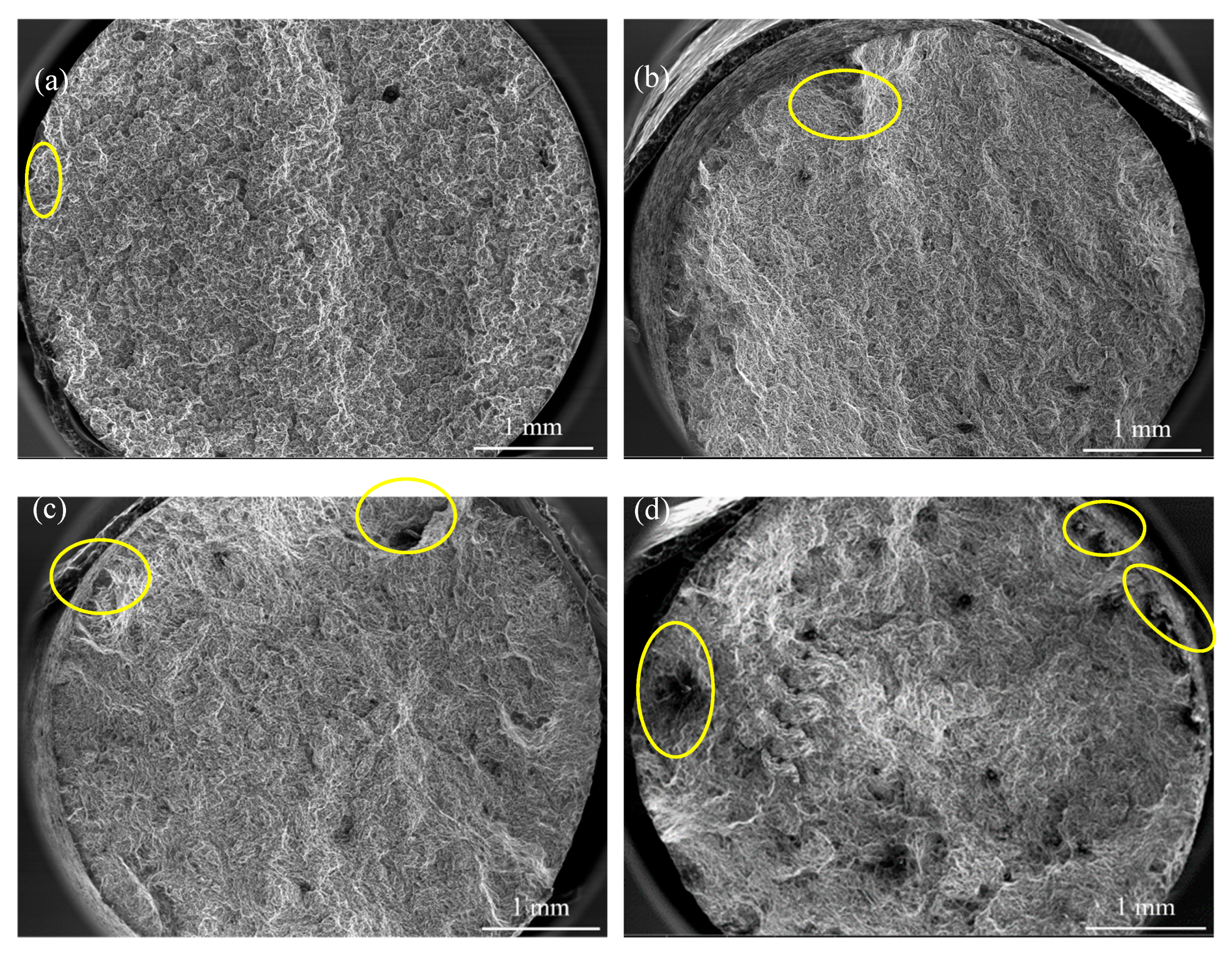 - The pronounced loss in mechanical performance is attributed to localized corrosion associated with secondary phases. Under tensile testing, the resulting corrosion pits serve as stress concentrators, promoting microcrack initiation and leading to premature fracture of the alloy.