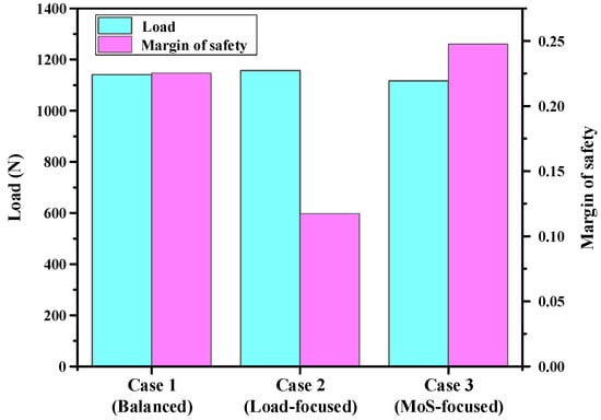 The Pareto set obtained in this study represents a set of feasible CFRP lay-up configurations that simultaneously consider the trade-offs between the maximum structural strength and failure safety, which are considered as multi-objective functions. This set is used as the input for the subsequent decision-making phase using the GRA, where the most preferred solution is selected based on the designer’s specified weights.