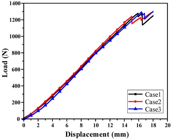 The results showed that the load of all selected configurations exceeded 1 kN at a punch stroke of 14 mm, and the MoS as a failure safety indicator showed meaningful differences with various distributions. By contrast, no failure was predicted at a stroke of 12 mm for any configuration, which was inadequate for the evaluation of failure-related characteristics. Furthermore, several lay-ups at a stroke of 12 mm produced loads below the 1 kN threshold, which restricted the evaluation of structural performance and made the condition unsuitable for comparative analysis. At a punch stroke of 16 mm, all lay-up configurations were predicted to fail, making it difficult to evaluate the trade-offs between the two objective functions, because every solution collapsed into a failure state. Therefore, a punch stroke of 14 mm was selected as the evaluation condition for lay-up optimization in this study because it represented a suitable distribution of values for strength assessment and damage progression.