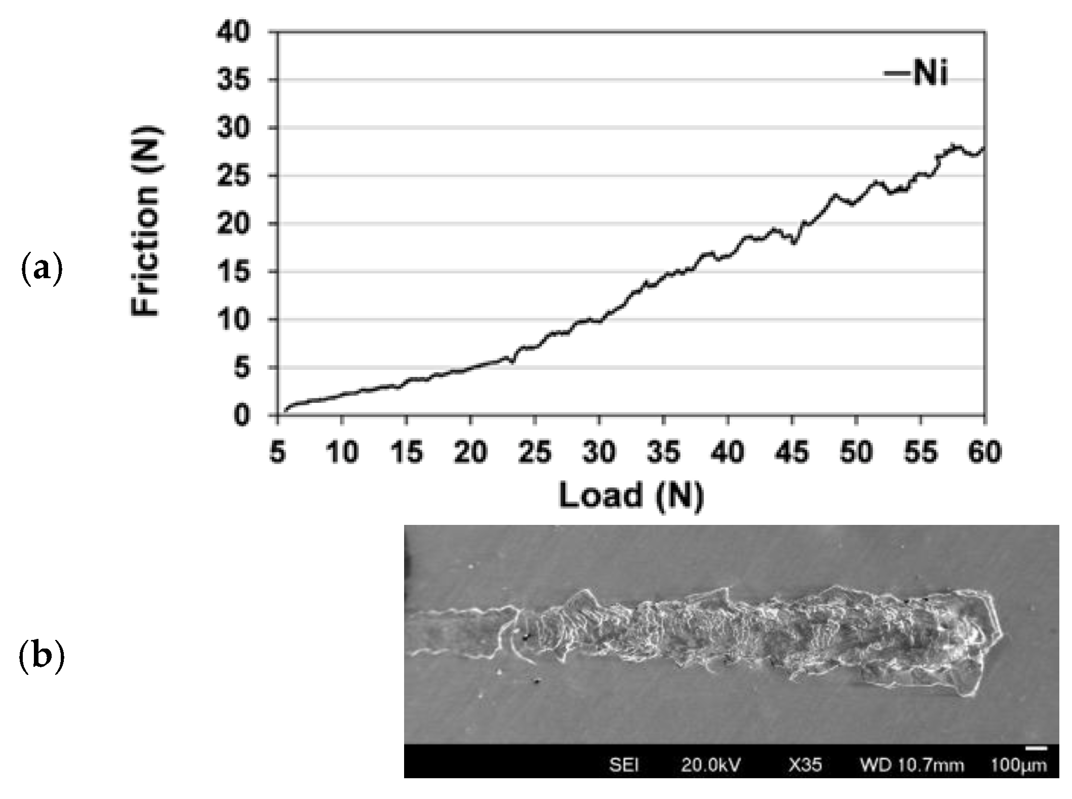 43. Qi, S.; Li, X.; Dong, H. Reduced friction and wear of electro-brush plated nickel composite coatings reinforced by graphene oxide. Wear 2019, 426, 228–238. [Google Scholar] [CrossRef]