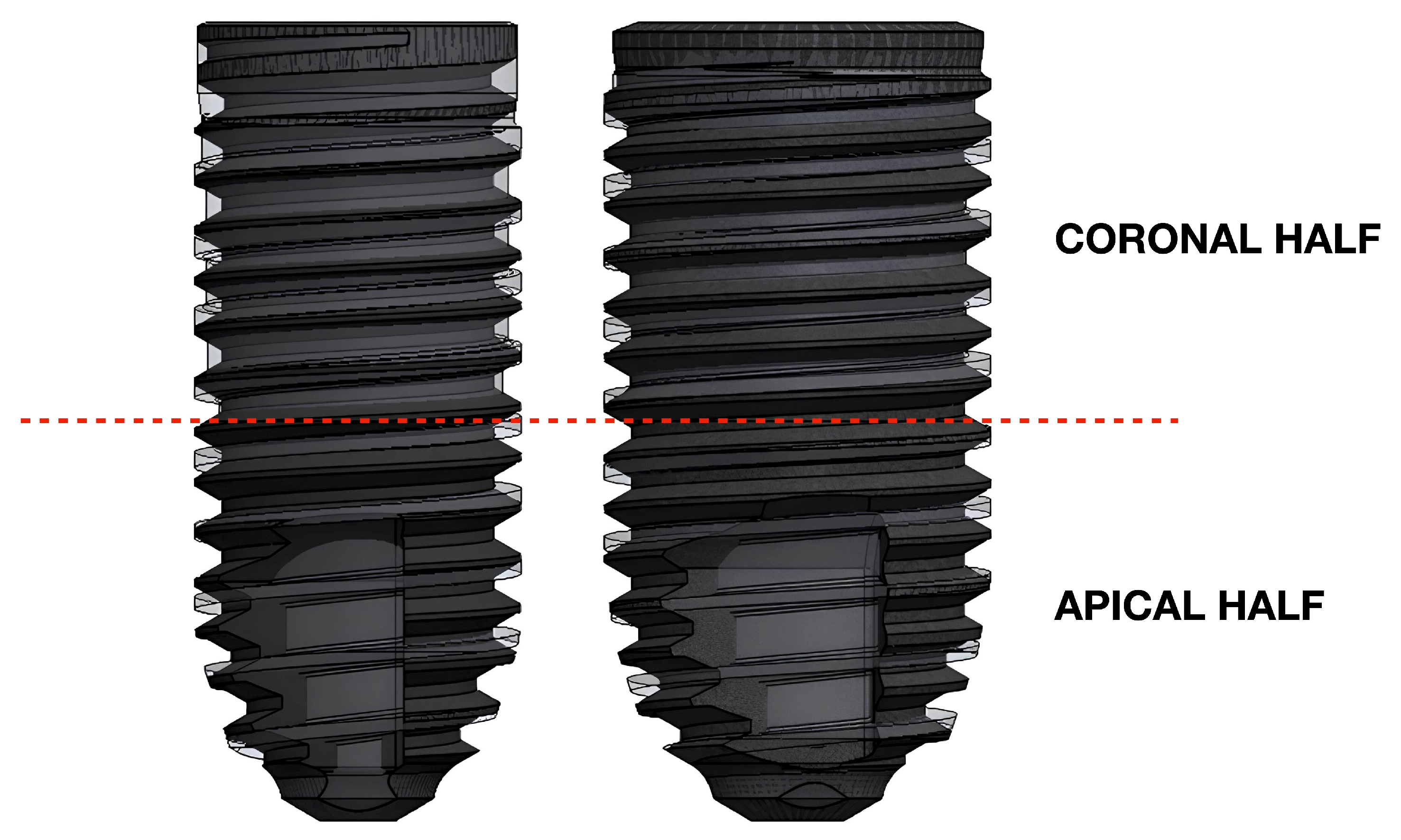 Implant Surface Variability Between Progressive Knife-Edge Thread Design and International Organization for Standardization Thread with and Without Tapping Area: A Model Analysis