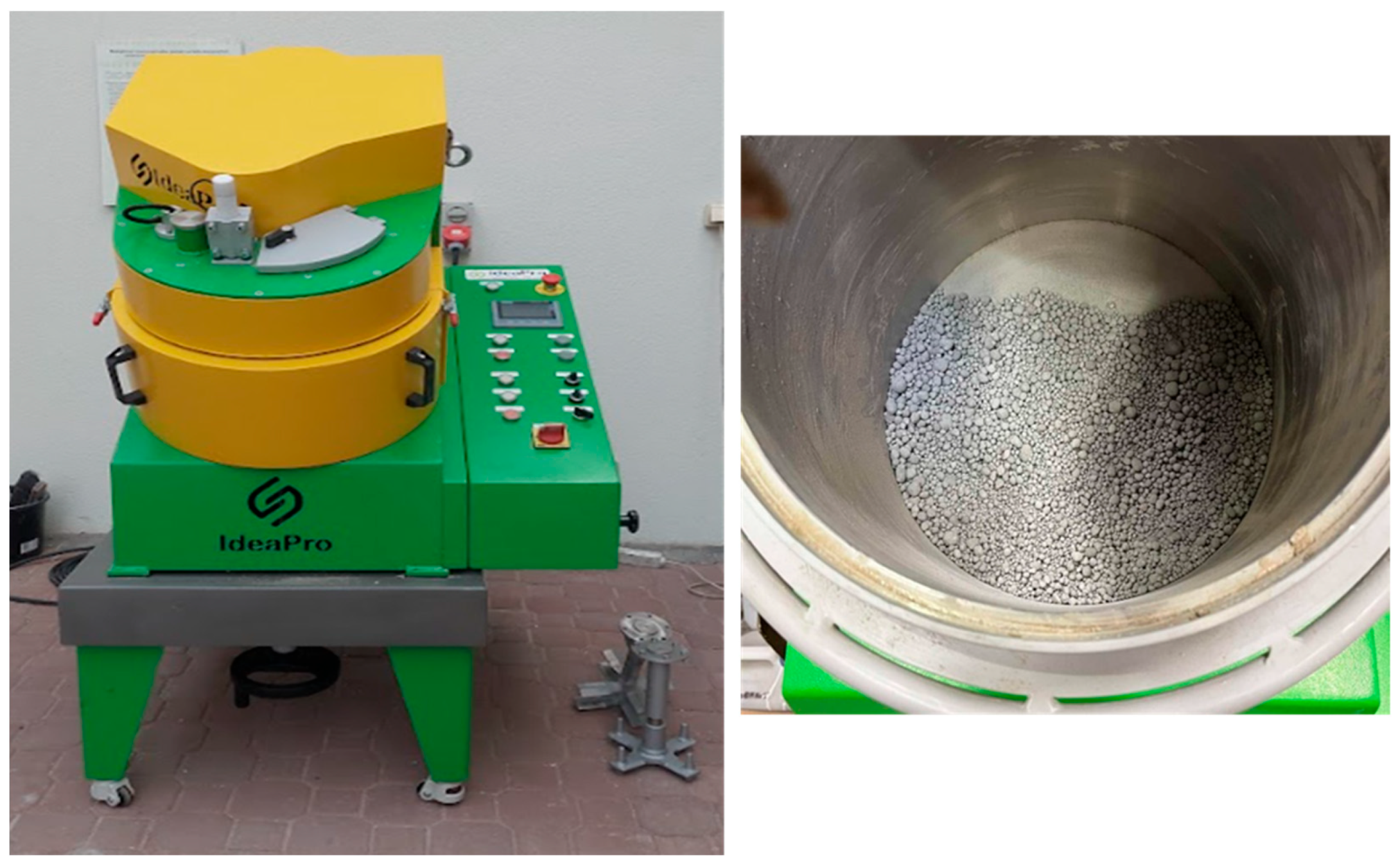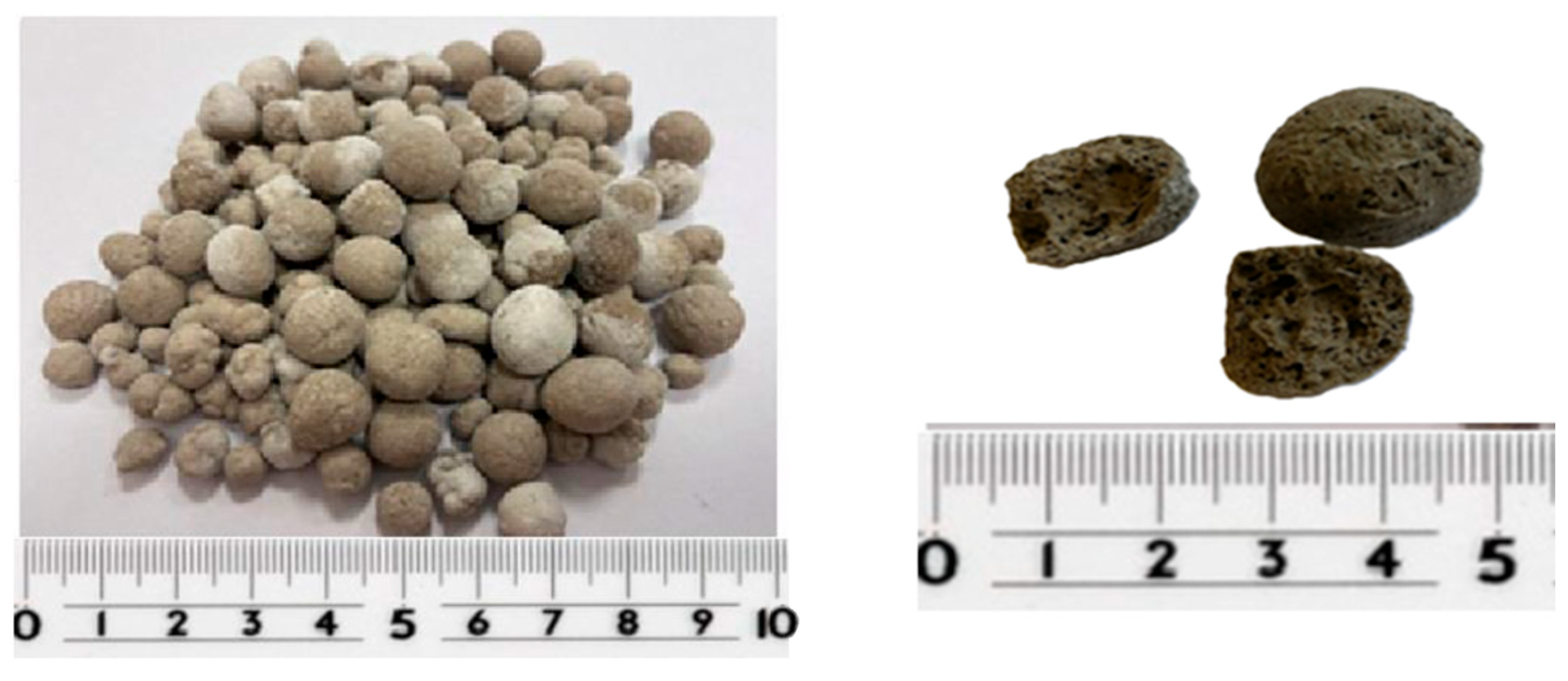 - Hankrishnan, K.; Ramamurthy, K. Influence of pelletization process on the properties of fly ash aggregates. Waste Manag. 2006, 26, 846–852. [Google Scholar] [CrossRef] [PubMed]