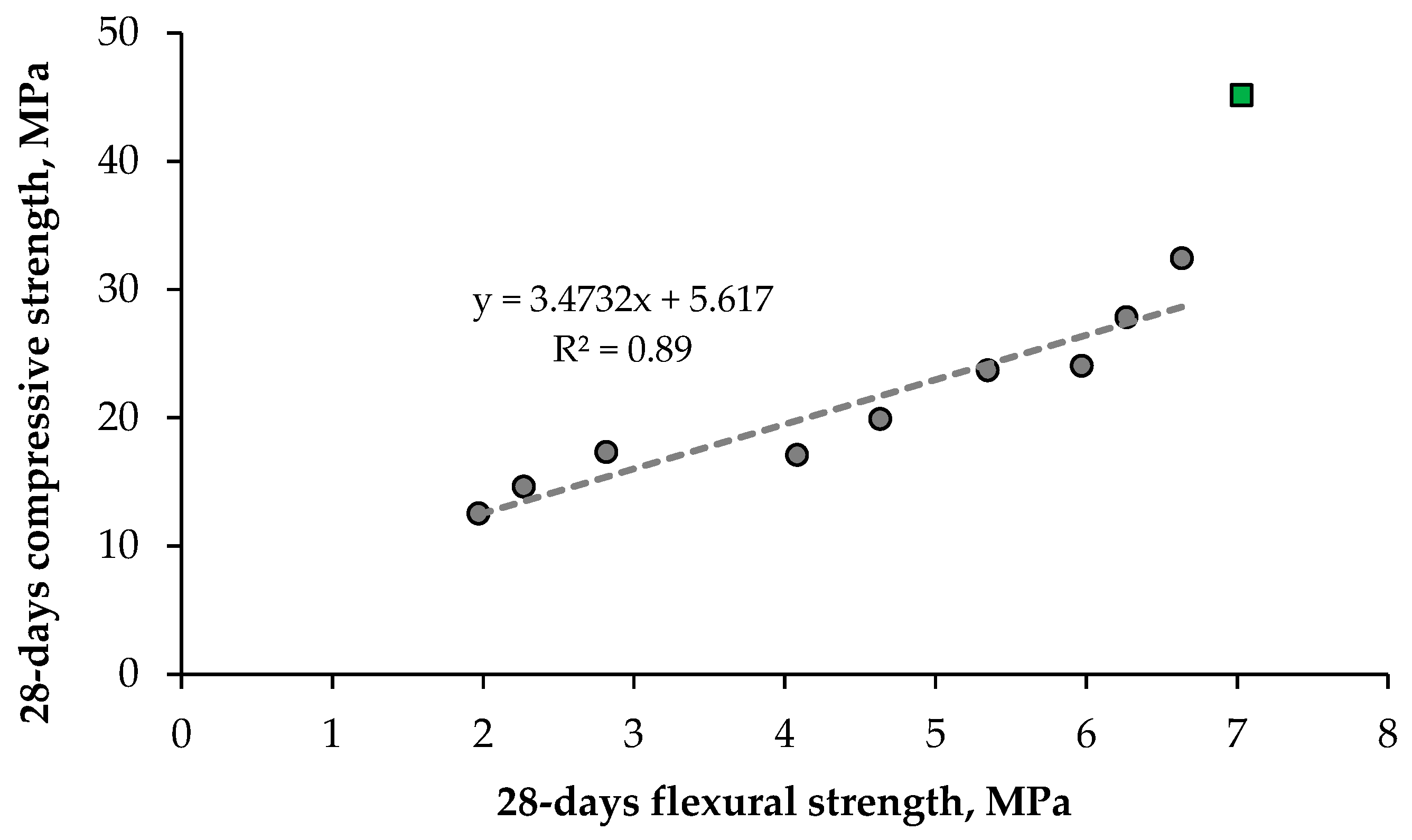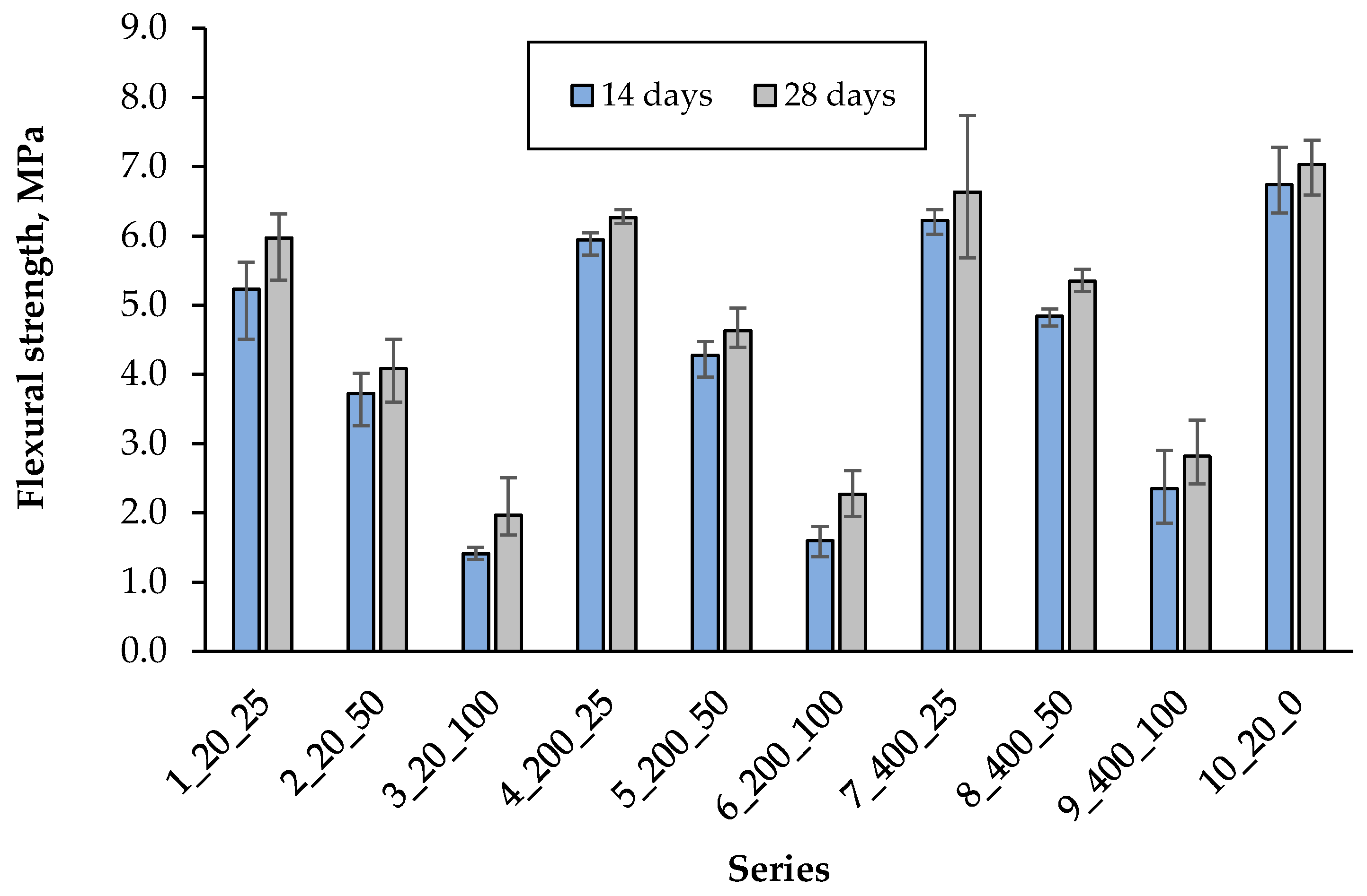 - Flexural strength after 14 and 28 days