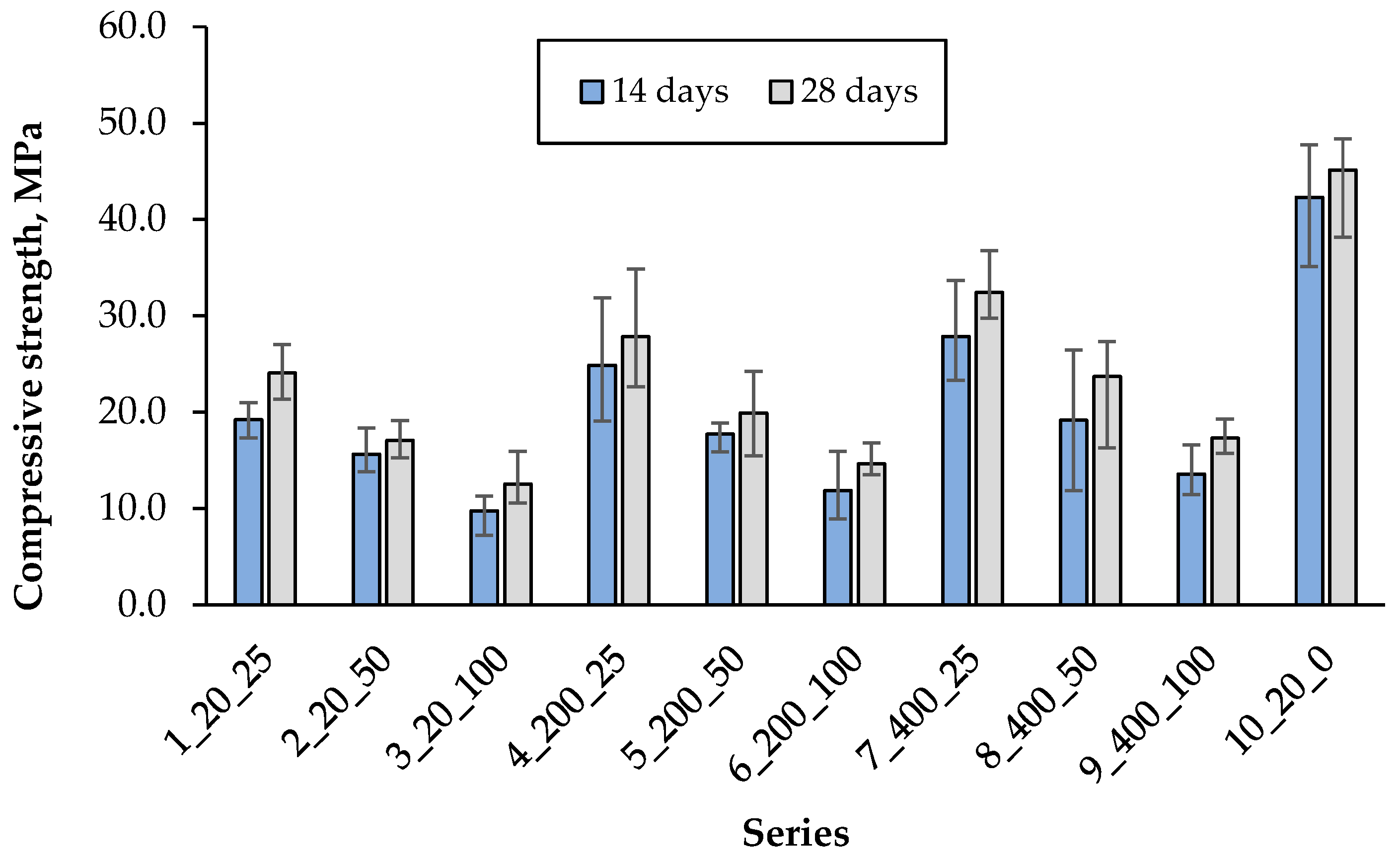 - Compressive strength after 14 and 28 days