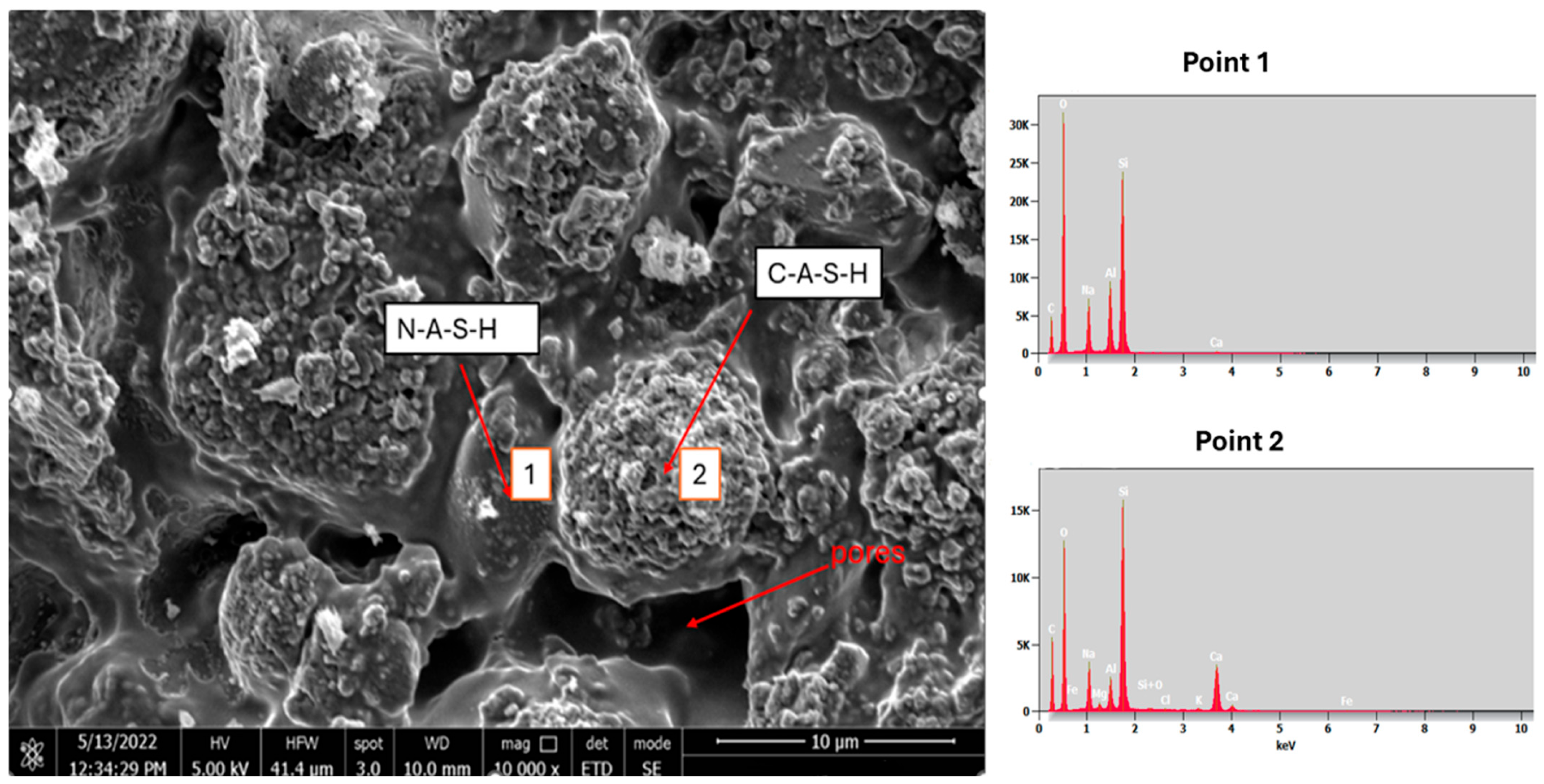 - Kamath, M.; Prashant, S.; Ralegaonkar, R. Microstructure Properties of Popular Alkali-Activated Pastes Cured in Ambient Temperature. Buildings 2023, 13, 858. [Google Scholar] [CrossRef]