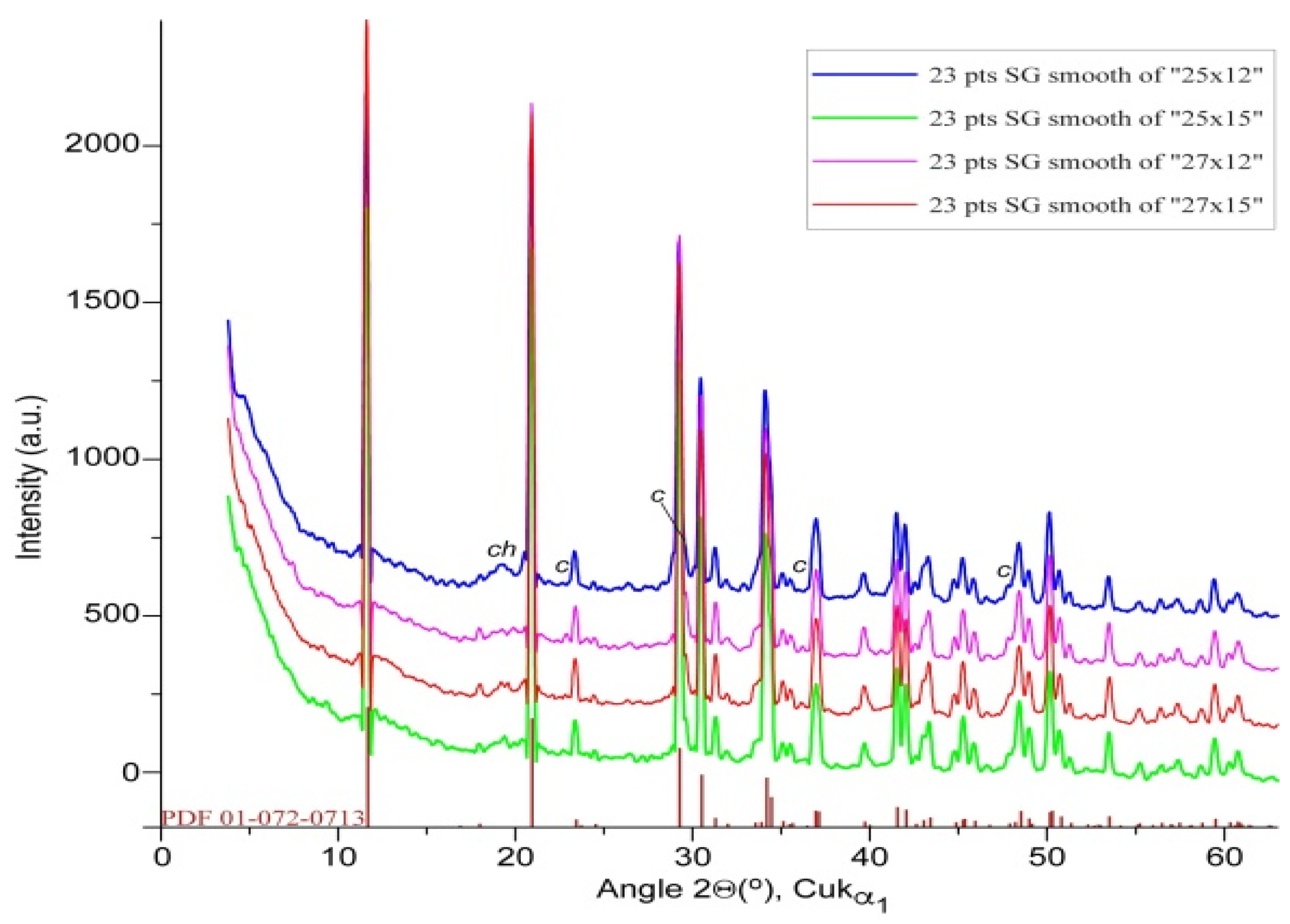 3.2.2. X-Ray Diffraction Analysis of Conversion Product
