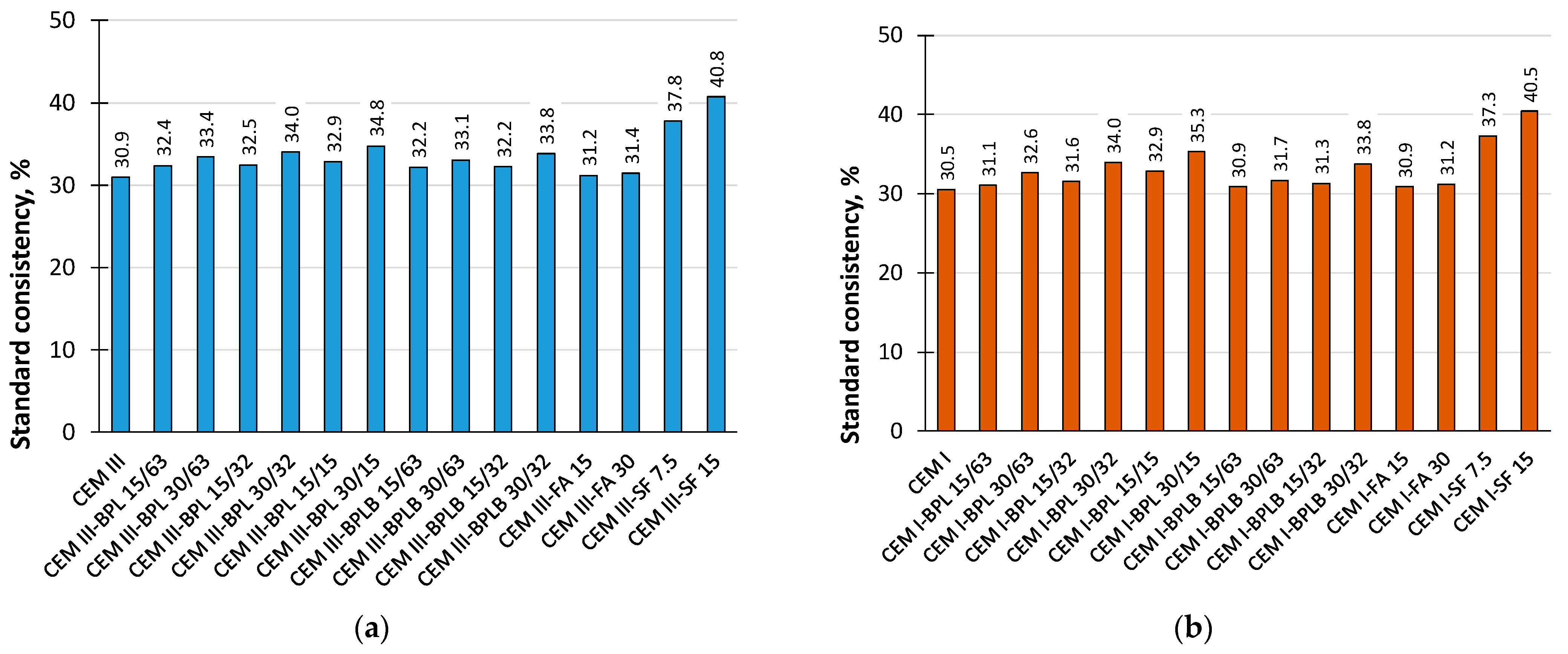 - Increasing the dosage of cement replacement with brick powder, regardless of cement type, raises the water demand of cement pastes and consequently reduces the workability of cement–sand mortars based on them;