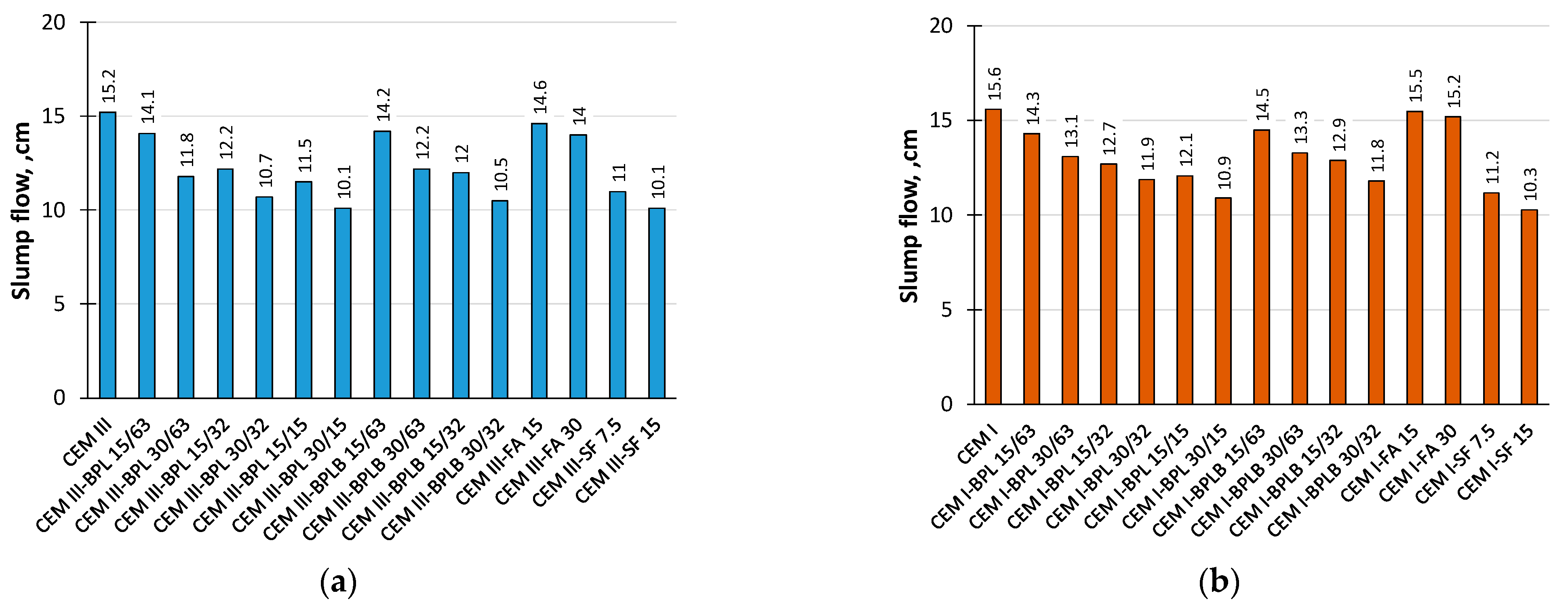 | Mixture ID * | CEM III, g | CEM I, g | BPL, g | BPLB, g | FA, g | SF, g | Sand, g | Water, g |