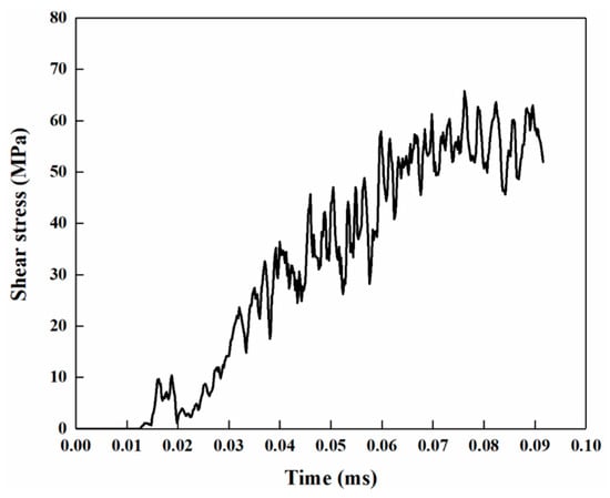 Figure 7 presents the FEM-SPH simulation results of joints with different surface roughness of copper tubes. Figure 8 shows the curve of shear stress at the copper–side interface versus time, where the test region corresponds to Point A in Figure 7b. As indicated in Figure 7a, the FEM-SPH simulation can more realistically reproduce the phenomenon of filler metal ejection after high-speed impact.