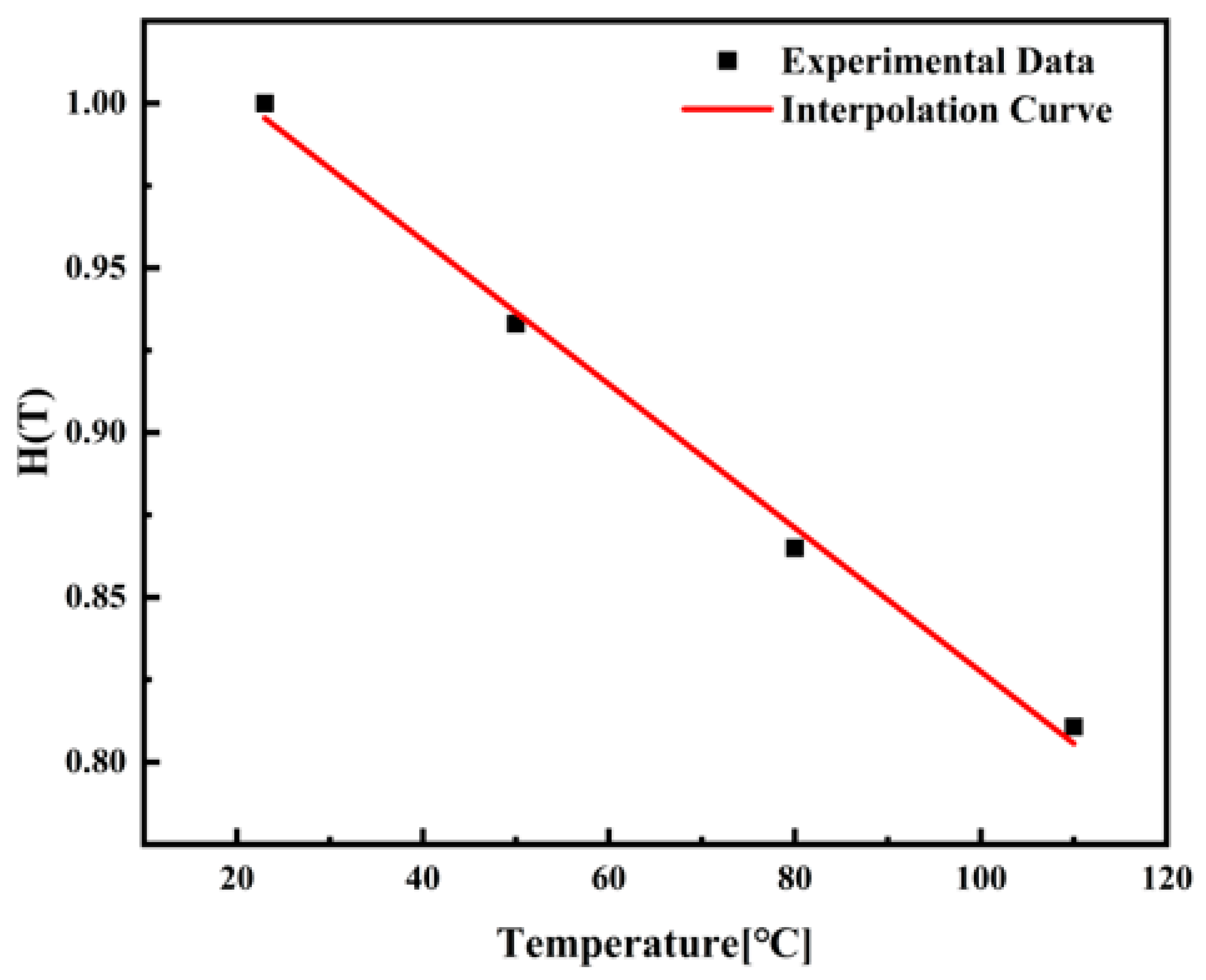 The temperature function H(T) was determined from experimental data obtained at 23 °C, 50 °C, 80 °C, and 110 °C and is applicable under standard strain rate condition
