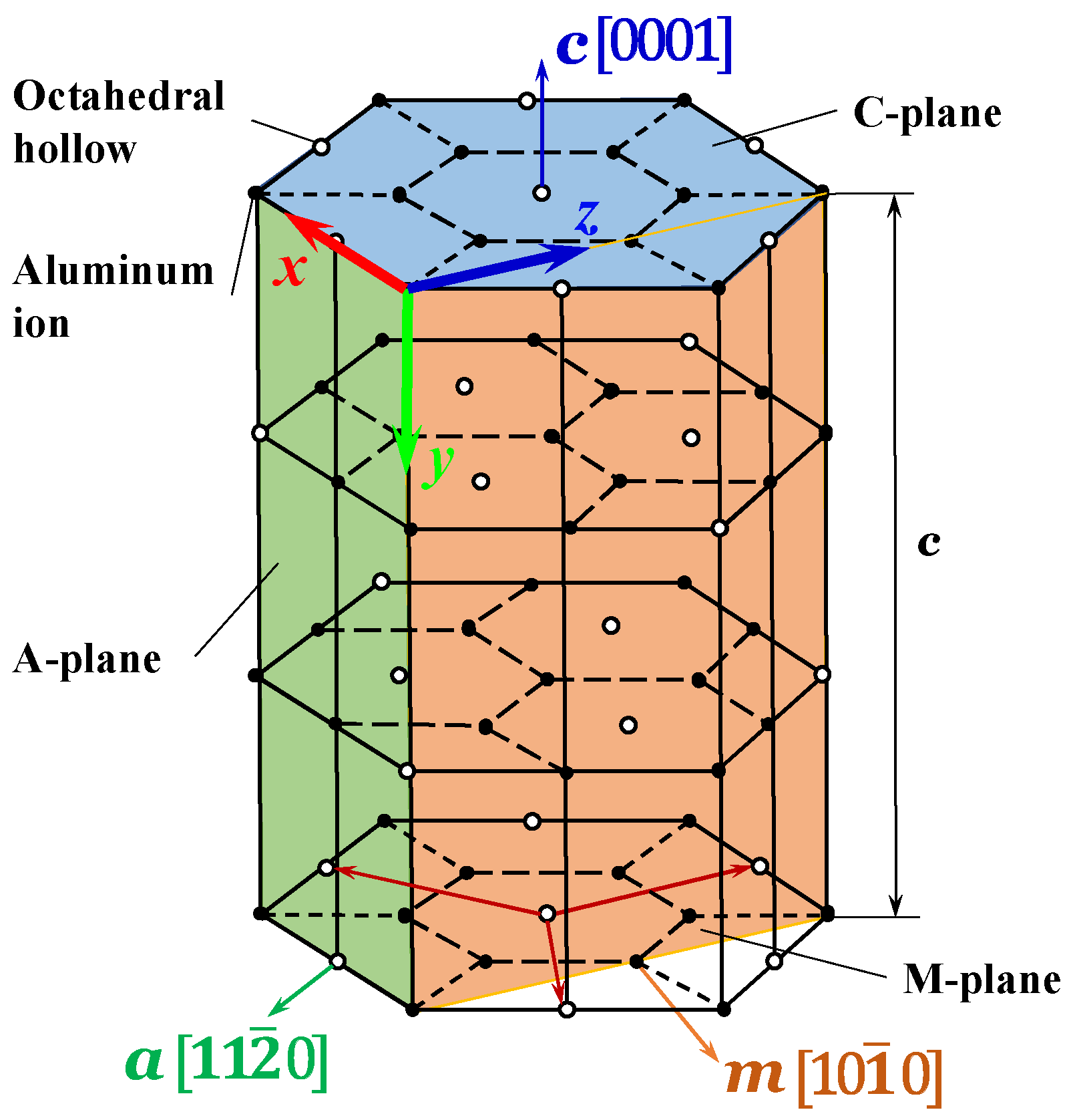Hexagonal unit cell diagram of sapphire.