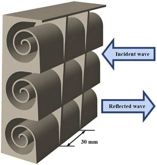 Here, c0 is the speed of sound in air and R is the geometric dimension of the structure’s cross-section, respectively. The impedance Zs at the sound wave incidence interface and the absorption coefficient α can be obtained from Equation (9):