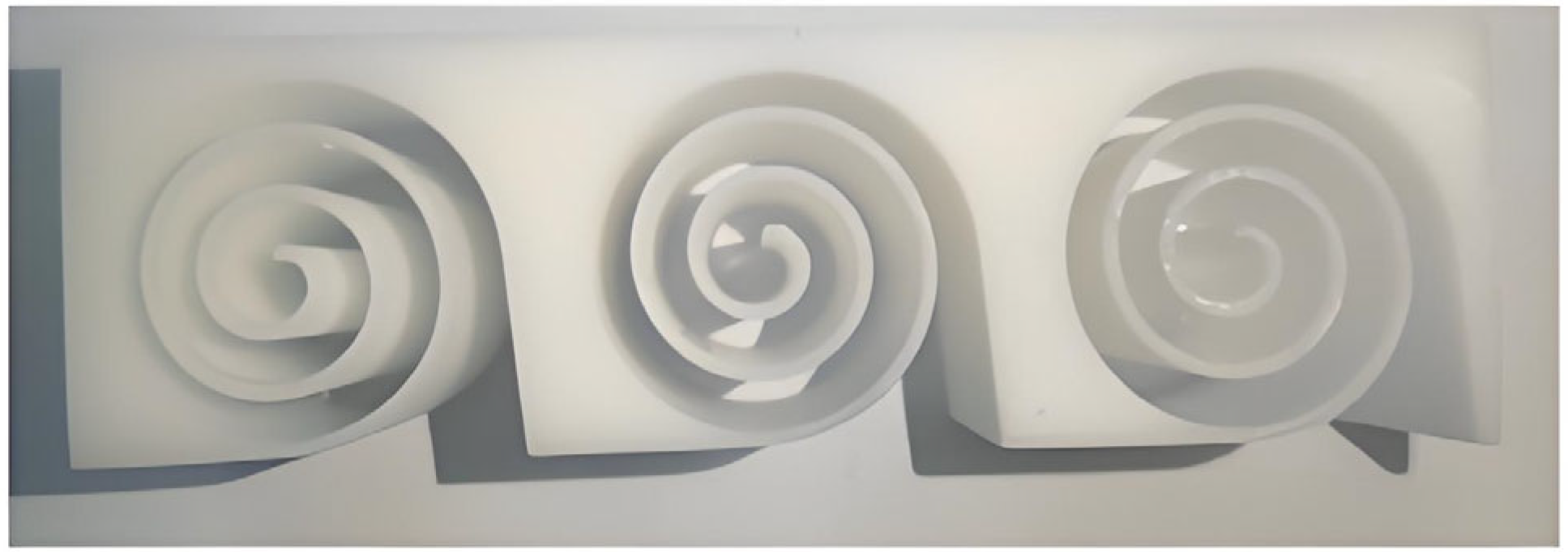 Figure 2. The core advantage of this technology lies in its ability to expand the sound absorption bandwidth through the spiral channel structure while maintaining structural compactness. It is suitable for scenarios with limited space and requiring strict acoustic isolation including architectural soundproof cabins, anechoic chambers, industrial equipment enclosures, and so on.