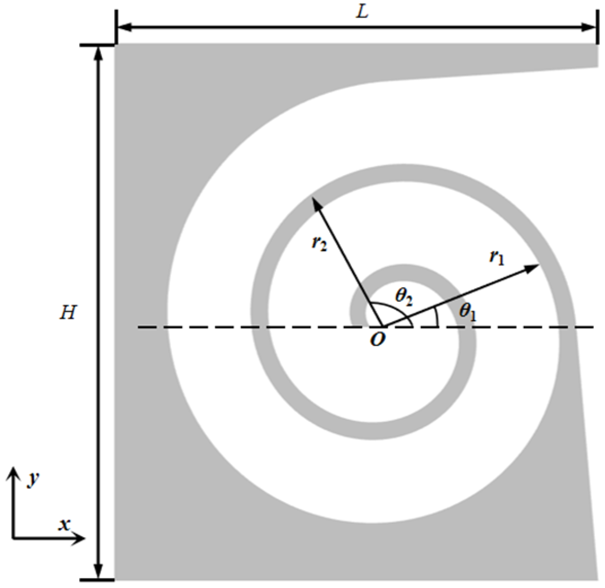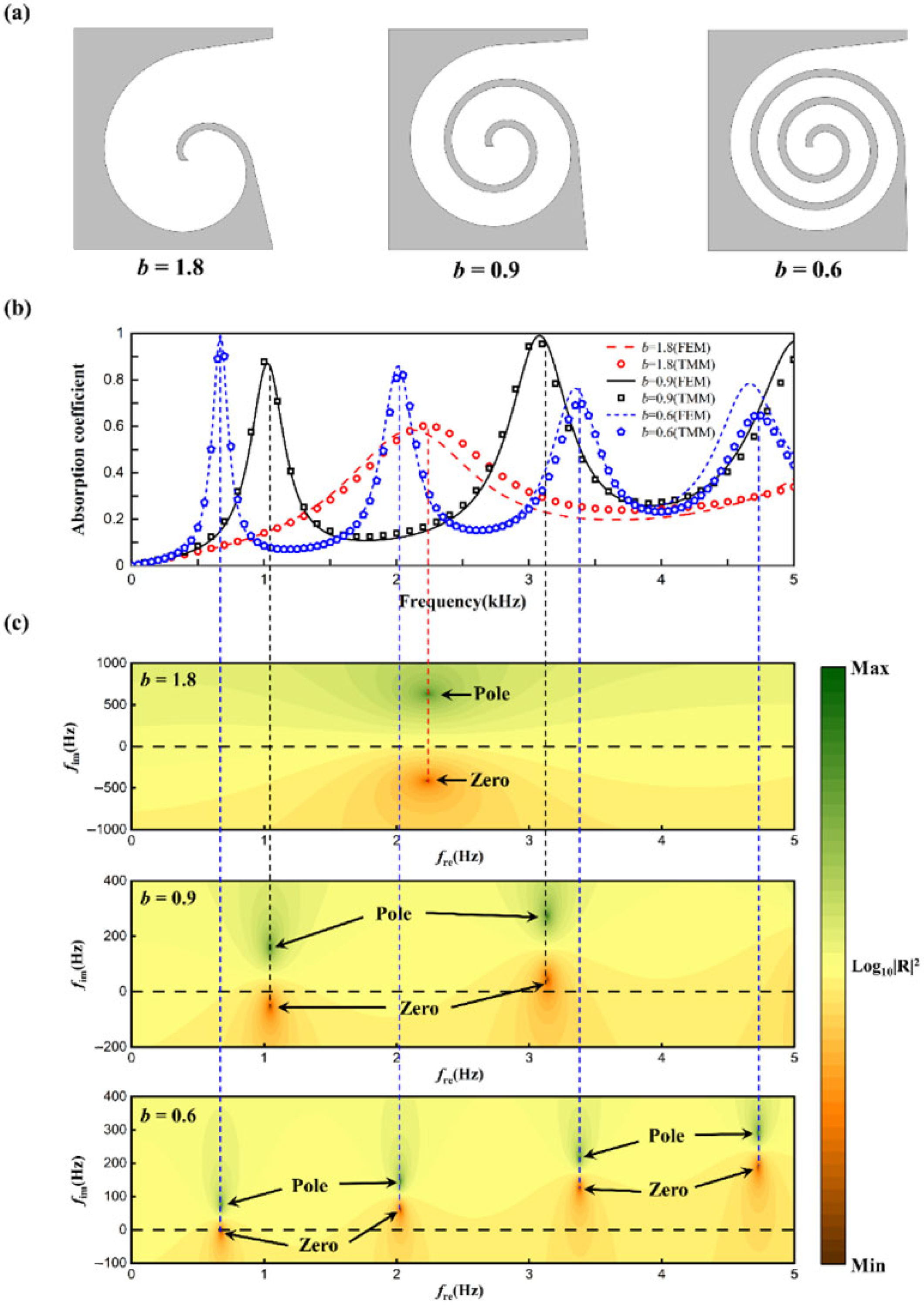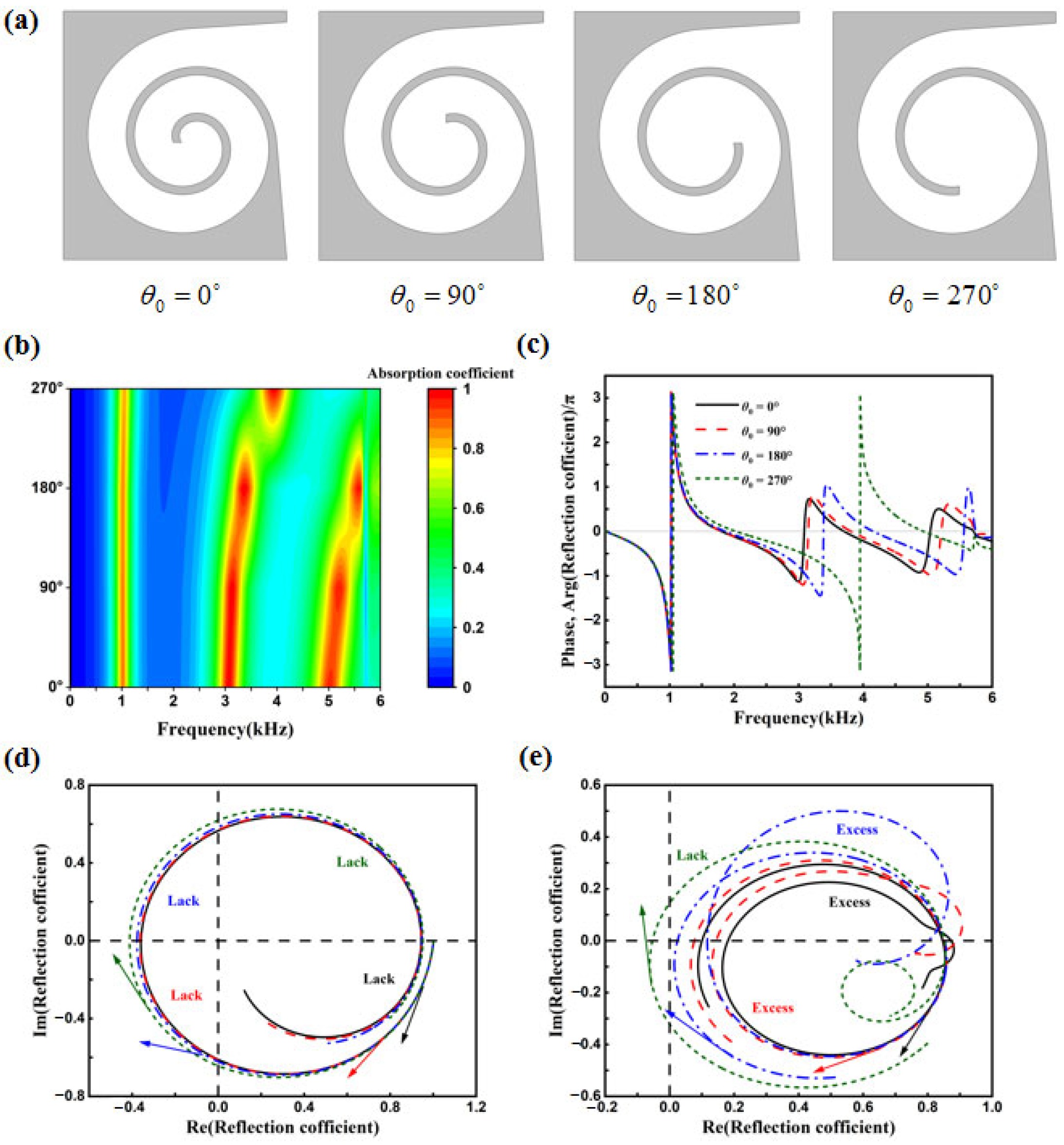 32] designed a ventilation broadband sound absorber based on Archimedean spiral units. They used the transfer matrix method to analyze the sound pressure–velocity transfer relationship between adjacent spiral units and calculated the overall structure’s sound absorption coefficient.