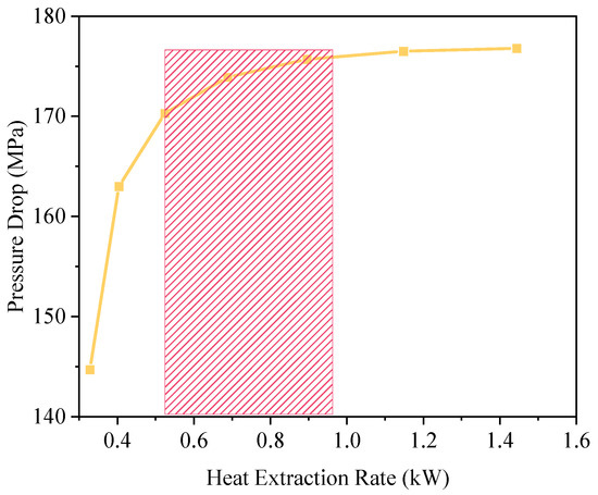 However, beyond a flow velocity of 1.0 m/s, the rate of increase in heat transfer begins to taper, suggesting that the system is approaching a saturation point where further velocity increases yield diminishing returns in thermal performance. Simultaneously, the pressure drop within the wellbore shows a pronounced upward trend with increasing flow velocity, rising from 0.33 MPa to 1.67 MPa. This pressure rise becomes exponential in the high-velocity regime (>1.2 m/s), substantially increasing the energy demand of the circulation pump and the system’s operational pressure burden. Therefore, from both thermal efficiency and economic perspectives, an optimal flow velocity range of 0.9–1.1 m/s is recommended to balance heat transfer enhancement with acceptable pressure losses.